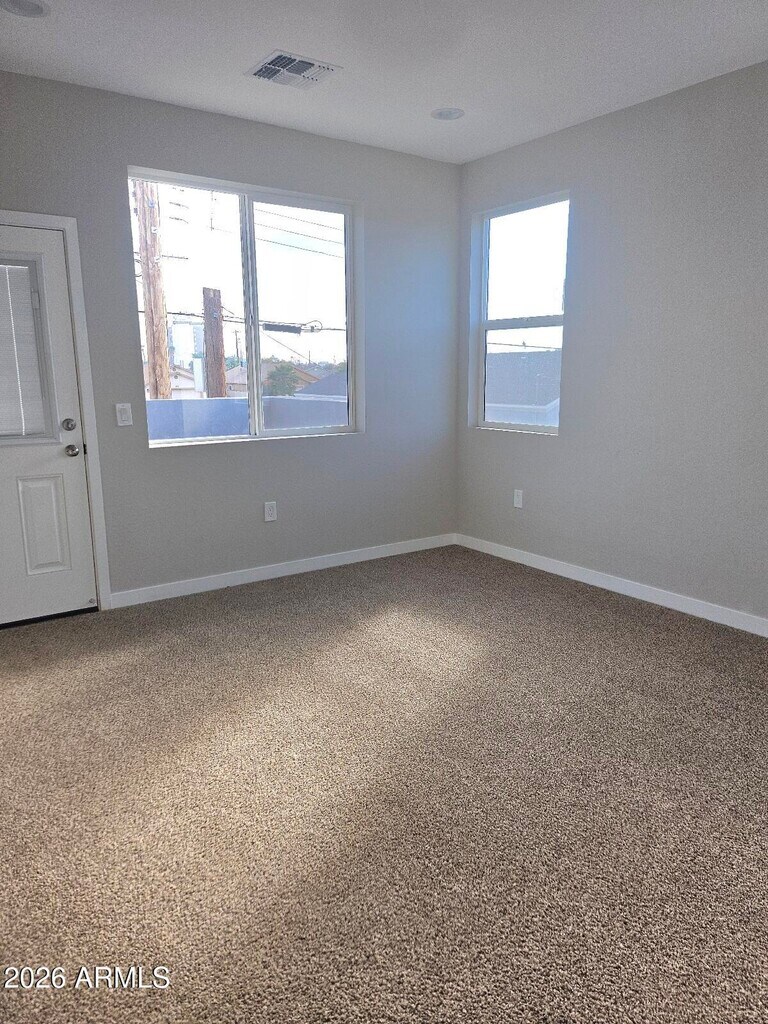 Awesome 5bed 3bath new construction available now. Great location less than five minutes from downtown Phoenix. Open floor plan with gorgeous stained concrete flooring. Large,gorgeous kitchen with quartz countertops and top of the line stainless appliances. Lots of cabinet space plenty of room for cooking & entertaining. Large pantry in kitchen and also features large sunken sink. High ceilings,private backyard and also 2 private balconies on 2nd floor. Bedrooms are great size with walk in closet space. Hall bathroom has full size tub and quartz countertops. Separate laundry room with washer and dryer and quartz countertop folding table. Main bedroom has walk in closet,ceiling fans,window blinds,and large bathroom with double sinks. Great Phoenix location minutes from Downtown.