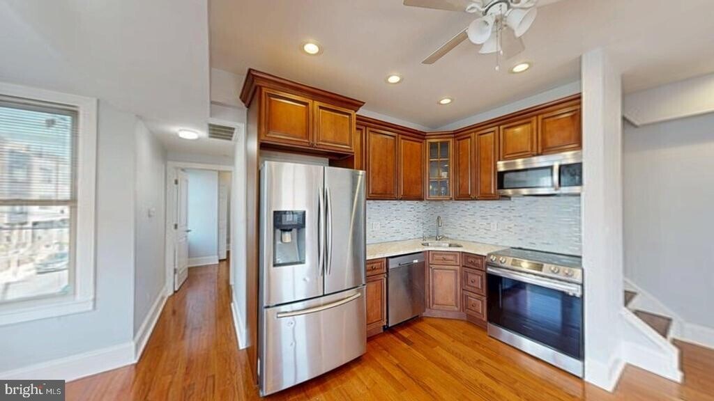 Now available for rent at 1401 S 20th St, a 4 bedroom, 3 bath apartment offering bright, open living and a practical layout in a convenient South Philadelphia location. Enter the home and head upstairs into a sun-filled, open-concept living and kitchen area, where wood flooring and abundant natural light create a comfortable and welcoming space. Whether you're unwinding after a long day or hosting a casual get-together, this main living area offers flexibility for everyday living. The kitchen is equipped with stainless steel appliances and a functional layout that keeps everything within easy reach. A laundry room & full bathroom on this level adds convenience, along with one bedroom, ideal for a home office, guest room, or added privacy from the upper level. Upstairs, you’ll find three additional bedrooms, all with wood flooring and a clean, cohesive feel. The primary bedroom includes its own private ensuite full bathroom, while a second full hall bath serves the remaining bedrooms, making the layout well-suited for shared living. Located in South Philadelphia, this home offers easy access to Broad Street, public transportation, and major roadways including I-76, making commuting into Center City and beyond straightforward. You’ll also find a variety of local restaurants, grocery stores, and everyday conveniences nearby. This location combines accessibility with the character and energy that make South Philadelphia such a desirable place to live.