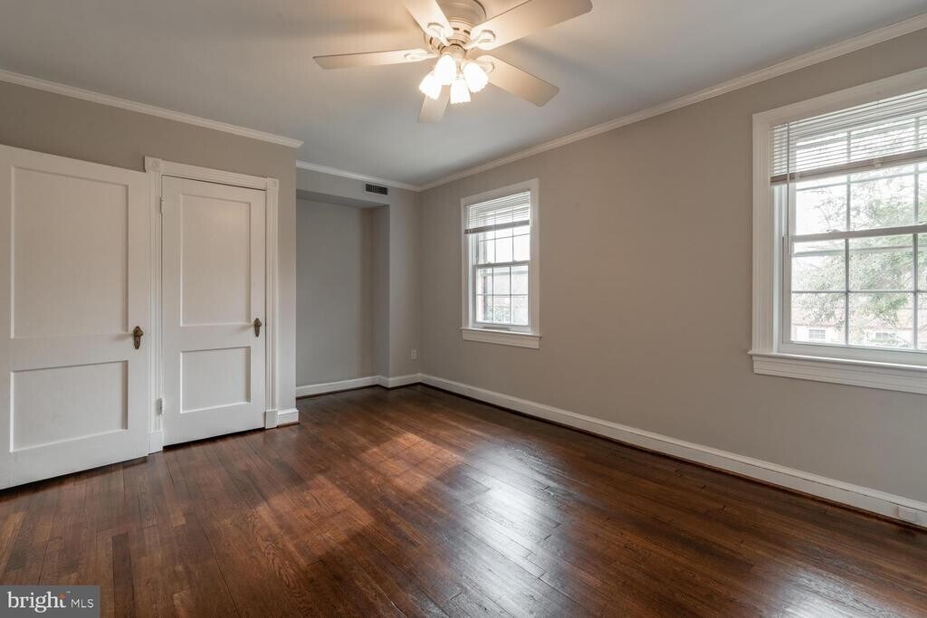 Brick 2 level 1 BR + Den in sought after Arlington Village. Available after March 1. Hardwood floor on main level and upper level, tile in kitchen and bathrooms. Kitchen has quartz counters, full height cabinets, microwave, and gas range. Step outside to a private deck. Large bedroom upstairs with 2 closets and a nook that is perfect for a home office set up. Verizon FIOS internet available. Community Pool, tennis, snow removal, water, trash included in rent. Walk to shopping, many restaurants, Arlington Cinema and Drafthouse, County Rec Center, and Library. ART bus stop steps from this home for commute to all points Arlington. Bus at Columbia Pike to Pentagon, and express rush hour bus directly to DC.