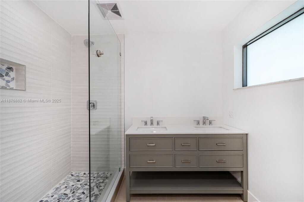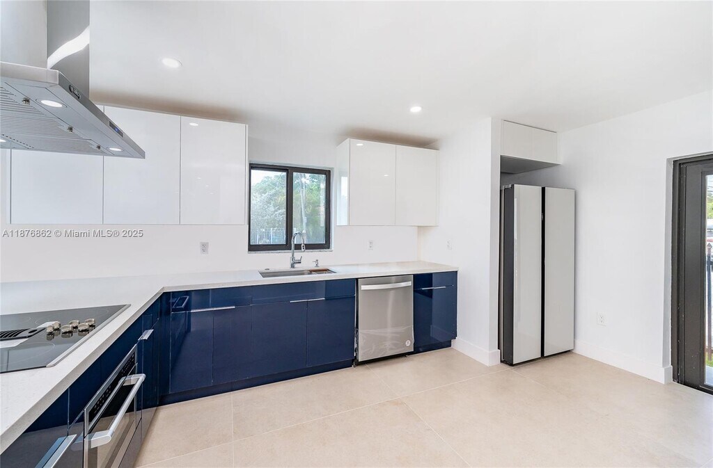 A 1200 sq.ft. beauty awaits you with this completely remodeled and modern 3/2 which is centrally located and is near Coconut Grove, Key Biscayne, Brickell & Downtown Miami. Step into this tiled throughout oasis featuring a modern kitchen ideal for any chef and comes equipped with quartz countertops, top of the line stainless steel appliances, a large pantry, and European cabinets offering plenty of room for storage. Three large bedrooms and two fully remodeled baths makes this an ideal place to call home. This unit is freshly painted and also comes with a brand new full sized front loading washer & dryer, LED lighting, modern ceiling fans, and impact windows. The exterior is perfect for entertaining and backyard barbecues with newly installed turf and new pavers. Hurry this won't last.