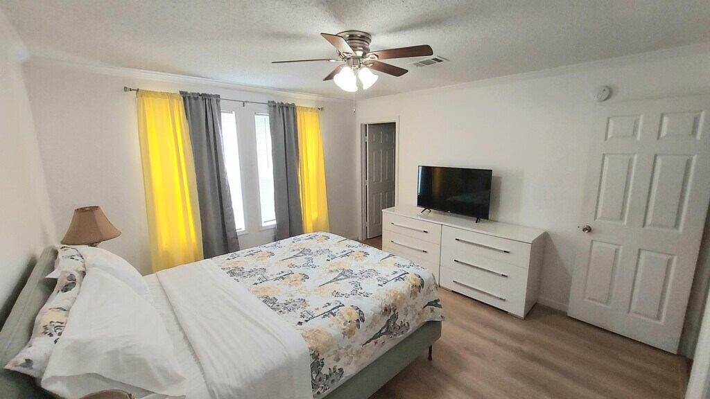 This spacious 3-bedroom, 2-bath home offers over 1,300 sq ft of comfortable living space, featuring walk-in closets.Enjoy total privacy with no neighbors on either side, plus a large driveway with plenty of room for multiple cars or even a boat.Located just 10 minutes from the beach and close to shopping centers and restaurants, it provides both comfort and convenience. Wi-Fi is included.