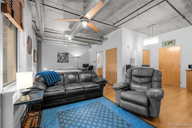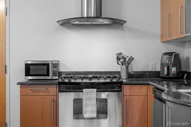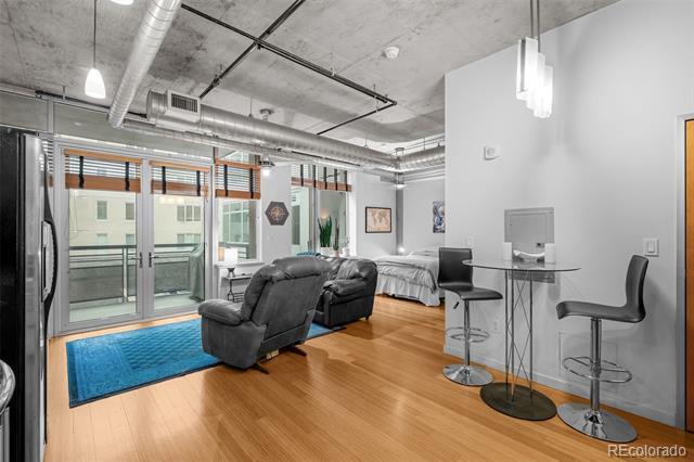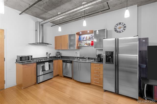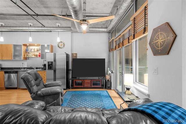 Unbeatable location! Located at the corner of Speer Blvd and Wewatta Street, this great studio condo in the highly desired Waterside Lofts is close to everything. The Cherry Creek bike path is right out the front door (bike score of 90). Walk or cycle east to Cherry Creek Reservoir, south to Chatfield Reservoir or north to Boulder. Walk across Speer Boulevard to Ball Arena and Elitch Gardens. Empower Field is a little longer walk across the Platte River, and Whole Foods Market and Union Station are just a couple blocks away with light rail to DIA and service all over the city. There are also several award- winning restaurants within blocks of this great home. Metro State University and University of Colorado - Denver Campus are just across the street as well. A 7 block Uber or Mall shuttle ride takes you to the Denver Performing Arts Complex and the Colorado Convention Center. The building has a secure entrance with a 24 hour desk attendant and secured underground parking. There is a state-of-the-art fitness center, a business center and a community room available to residents for many uses. The bike maintenance area includes an air compressor for low tires. This home includes all appliances: gas range, dishwasher, refrigerator and countertop microwave, plus a stackable washer/dryer. The private balcony also has a hard plumbed gas line for your grill (no tanks necessary!). Condominium MLS# 1766180