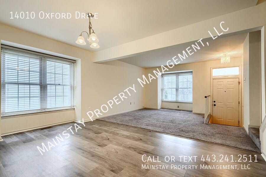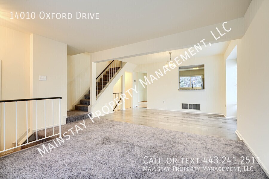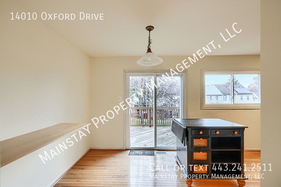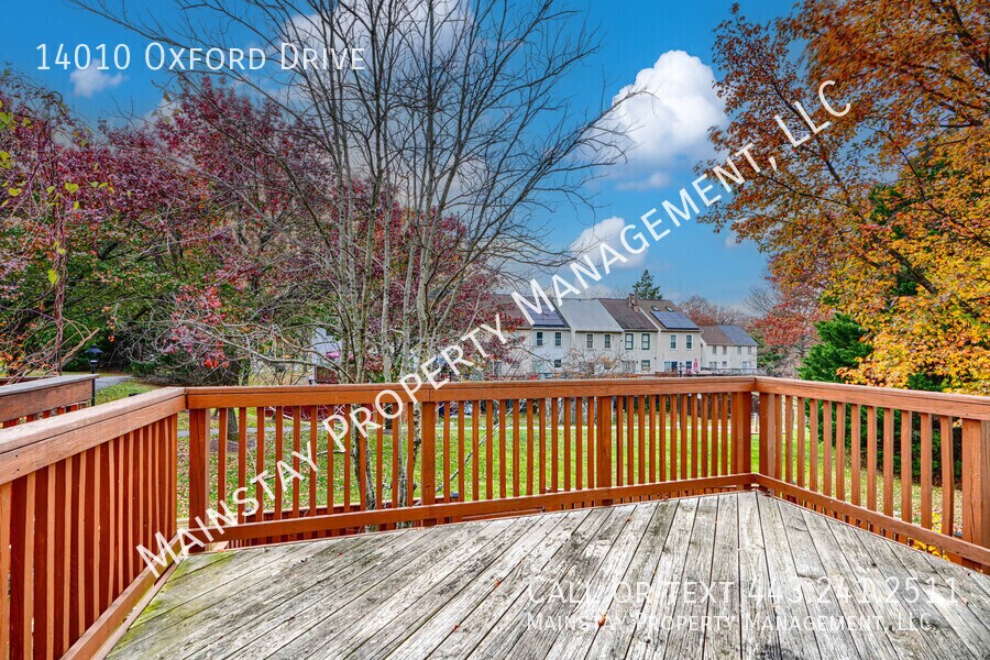Available immediately! Welcome to 14010 Oxford Drive, a two-bedroom end-unit townhome featuring an attached garage, private deck, and fenced yard. The main level offers an open-concept living and dining area with a convenient half bath, updated kitchen, and access to the back deck—perfect for outdoor dining or entertaining. The kitchen and dining room have been refreshed with luxury vinyl plank flooring, granite countertops, stainless steel appliances, and backsplash. Upstairs, you’ll find two comfortable bedrooms filled with natural light and generous closet space. The primary bedroom boasts vaulted ceilings and neutral paint, while the shared full bathroom includes an updated vanity and a tub/shower combo. The finished walk-out basement provides additional living space with access to the attached garage, a washer and dryer, and a flexible rec area—ideal for a playroom, home office, or fitness space. Pets are negotiable with a $45 monthly pet rent.