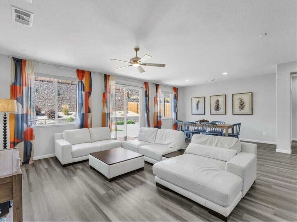 Now Available in Galena Area- 14013 Dancing Flame Ct, Reno, NV 89511 This beautiful newer home is located in one of South Reno’s most sought-after communities, known for its top-rated schools, peaceful setting, and convenient access to shopping, dining, and outdoor recreation. Built in 2019, this 4-bedroom, 3-bathroom home with a 2-car garage and 2,711 square feet offers a thoughtfully designed layout ideal for a variety of living needs. The primary suite is conveniently located on the main level, providing privacy and ease of access. Upstairs, the home features a full bedroom and bathroom paired with a spacious loft living area, creating an ideal setup for guests, extended family, teens, or a private home office retreat. The home includes new appliances, modern finishes, and abundant natural light throughout. Outside, enjoy low-maintenance xeriscape landscaping that enhances curb appeal while minimizing upkeep. A basketball hoop adds a fun and functional outdoor feature for everyday enjoyment. A $100 monthly HOA/sewer fee applies. Pets will be considered with an additional deposit. With newer construction, a flexible floor plan, and an exceptional South Reno location within a highly desirable school zone, this home presents a rare opportunity to rent a high-quality property in one of Reno’s premier areas.