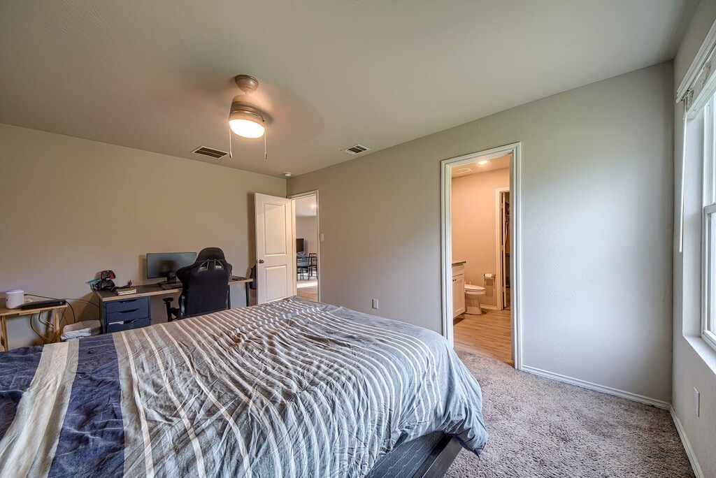 Welcome to this beautifully maintained single-story 3 bedroom, 2 bathroom home in The Silos, offering an open layout designed for comfortable everyday living. The spacious living area flows seamlessly into the kitchen and dining space, creating the perfect setup for entertaining or relaxing at home. The kitchen features granite countertops, stainless steel appliances, ample cabinet space, and a large breakfast bar that opens to the living room. Natural light fills the home, highlighting the modern finishes and easy-care flooring throughout the main living areas. The private primary suite offers a spacious bedroom, en-suite bath with a spacious vanity, and a generous walk-in closet. Two additional bedrooms provide flexibility for guests, family, or a home office. Additional features include a separate laundry room, modern lighting and ceiling fans, and plenty of storage throughout the home. Step outside to a fully fenced backyard with room to relax, garden, or entertain. Conveniently located with easy access to major highways, shopping, dining, and local amenities. This home combines comfort, functionality, and a great location-schedule your showing today!