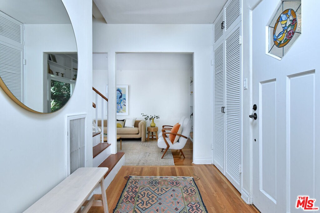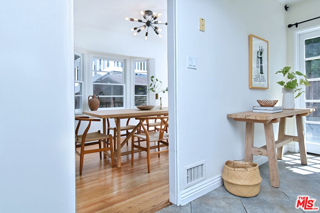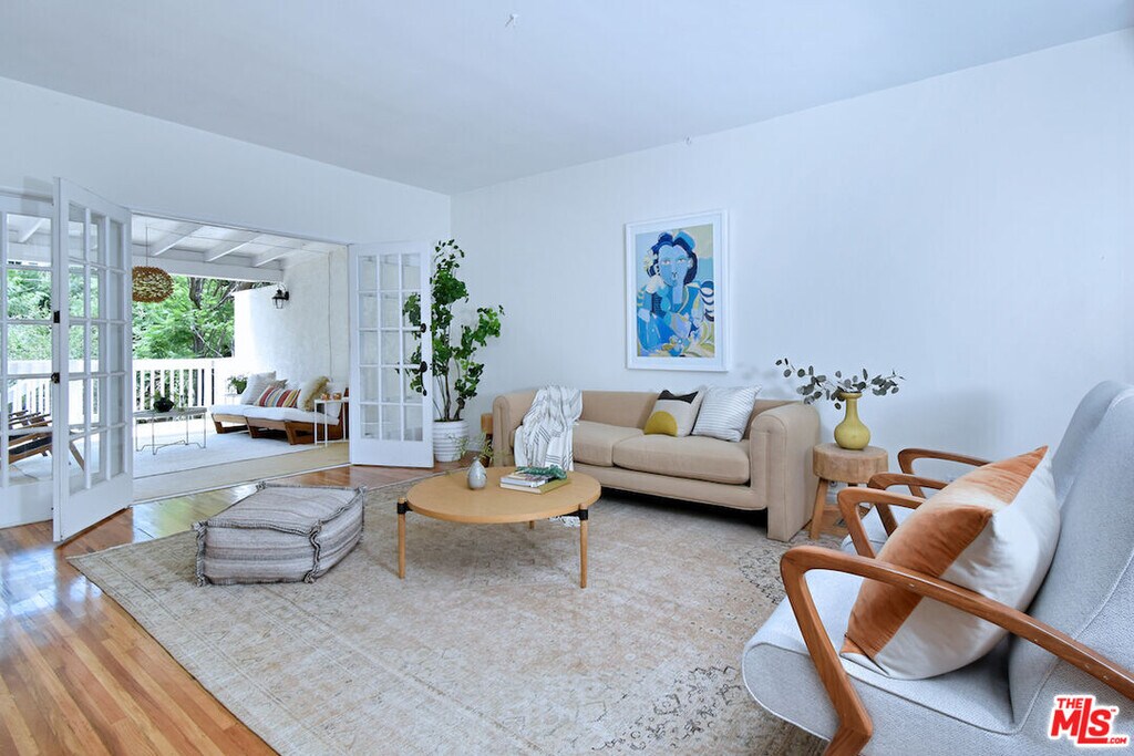 **Picture from previously staged** Privacy hedged hidden gem with treetop views, traditional details, magnificent yard and a hip canyon vibe located well south of Ventura Blvd. in prime section of Sherman Oaks. Gated entrance, stairs and greenery all around opens to very special two story family home complete with generous public rooms consisting of charming entry, bright formal dining room, nice open granite countered kitchen w sweet breakfast area and clever half bath, all flooded w natural light and access to wonderful side patio. Fantastic living room with petite wet bar opens through french doors to spectacular covered patio (balcony style, think outdoor family room) which overlooks the even more incredible mature landscaped, big grass, blooming jacaranda, fruit trees, magical rear yard. Upstairs are three ample sized bedrooms, one more sunlit than the next, including two secondary bedrooms, w tons of windows serviced by a beautiful, central stone bath. Charming westerly exposed primary w lovely en suite stone bath and period built in drawers below closets (each bedroom has). Yard level central patio is perfect for your seasonal gatherings / outdoor dining, terrific storage rooms / areas w separate laundry room close by. Street level two-car open air garage and easy, close in, momentary access to necessity shopping, many fine dining options and westside arteries complete this truly special home. MLS# 26649251