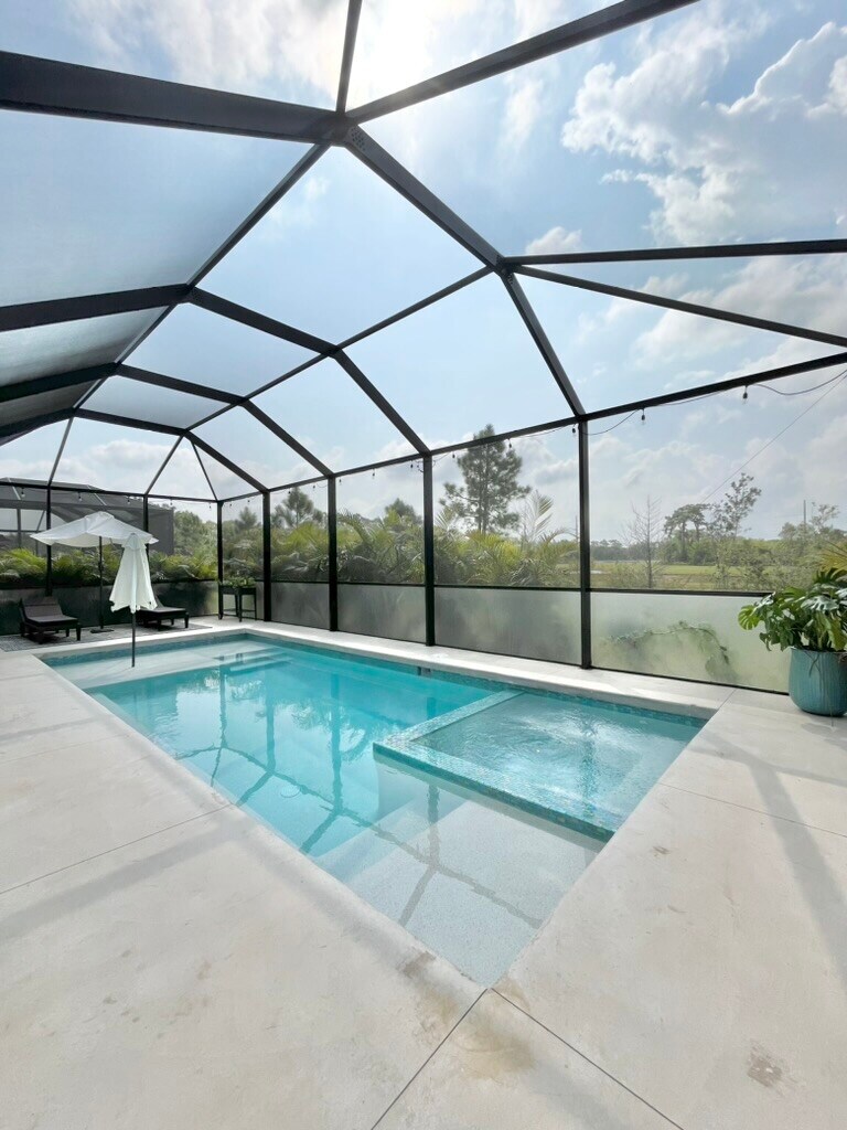 New pool, spa, pool cage, privacy screening, landscaping, kitchen and bathroom updates. This home is like new, a hardly lived in 2020 build, situated in the The Palisades. This is a gated maintenance-free community. The home has an open floor plan with tile flooring throughout the main living areas and luxury vinyl plank in all the bedrooms. The kitchen features stainless steel appliances, upgraded oven, custom built in range vent, microwave drawer, custom cabinets, valance trim, granite countertops, walk-in pantry, and a large island with room for seating. The sliding glass doors open up to the lanai and pool area, connecting indoor and outdoor spaces. The Primary Suite has two walk-in closets with built ins, double vanities, updated walk-in shower and a view of the pool and spa. The lanai provides ample privacy with newly landscaped areca palms and enhanced privacy screening around the perimeter of the pool/spa and side door. Residents have access to multiple amenities including a well-equipped gym and community pool. The home is a short drive to Lakewood Ranch Main Street and Waterside Place. Both areas offer opportunities for boutique shopping, dining and entertainment.