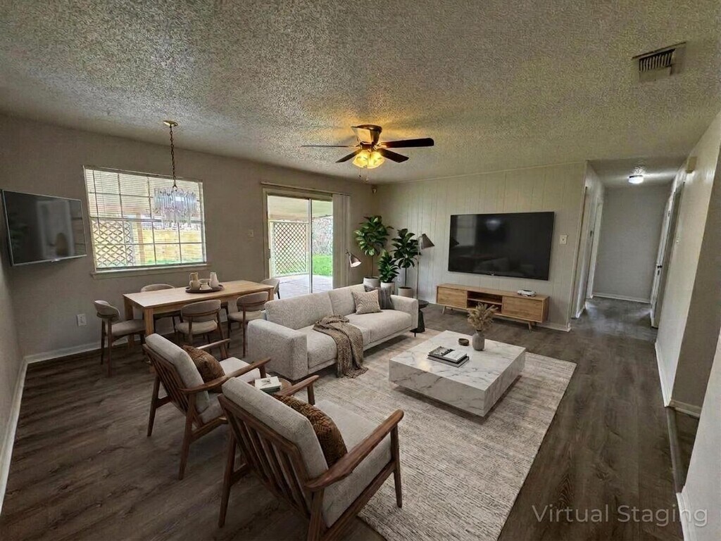 View 360° virtual tour: Welcome to this 3-bedroom, 2-bathroom home for rent in Killeen, Texas. This home features durable vinyl plank flooring throughout for a cohesive look and easy maintenance. Enjoy the convenience of two living rooms, laundry room with washer and dryer connections, and fenced-in back yard. The kitchen includes a refrigerator, glass top stove, microwave, and dishwasher. The primary bedroom's ensuite bath includes a glass-enclosed shower and lovely patterned accent tiles. Pets of all sizes are welcome! Appointments aren't required to tour. Contact us or stop by our Killeen office to learn more and see this home in person once it becomes available! We are located at 1020 W Jasper Drive, Killeen, TX 76542. Disclaimer: The furnishings or enhancements shown are AI-generated and intended for inspiration only. They may not reflect the actual scale, condition, or current features of the property.