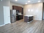 Now available for lease in a peaceful master-planned community! This charming north-facing home is move-in ready and offers a bright, open-concept layout designed for comfortable everyday living. The spacious kitchen features granite countertops, a gas cooktop, island seating, and stylish lighting, all flowing seamlessly into the main living area — perfect for relaxing or entertaining. Luxury vinyl plank flooring runs throughout the main areas for easy maintenance, while plush carpeted bedrooms provide added comfort. Tall ceilings, recessed lighting, and a fresh neutral color palette create a light and airy feel, with abundant natural light throughout the home. The split-bedroom floor plan offers added privacy, ideal for roommates, guests, or a home office setup. Enjoy the low-maintenance backyard with a covered patio and grassy space — perfect for morning coffee or unwinding in the evening. Located in a quiet community with convenient access to local schools, shopping, and dining. Don’t miss this opportunity to lease a beautifully maintained home in a great location!