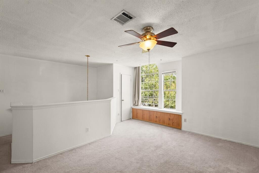 ***OPEN HOUSE SAT 10/4 FROM 2:30-3:30PM*** Tucked away on a quiet cul-de-sac adjacent to a park, this 3 bedroom and 2.5 bath home offers an open floor plan that feels larger than its size. The spacious living room features a cozy fireplace, while upstairs you’ll find a bright game room perfect for work or play. The kitchen opens to the living area with a sunny dining space, and the oversized covered patio overlooks a fenced backyard—great for gatherings or relaxation. The private owner’s suite includes double doors, an ensuite bath with dual vanities, and two closets plus a linen closet. Ceiling fans in all bedrooms add comfort year-round.