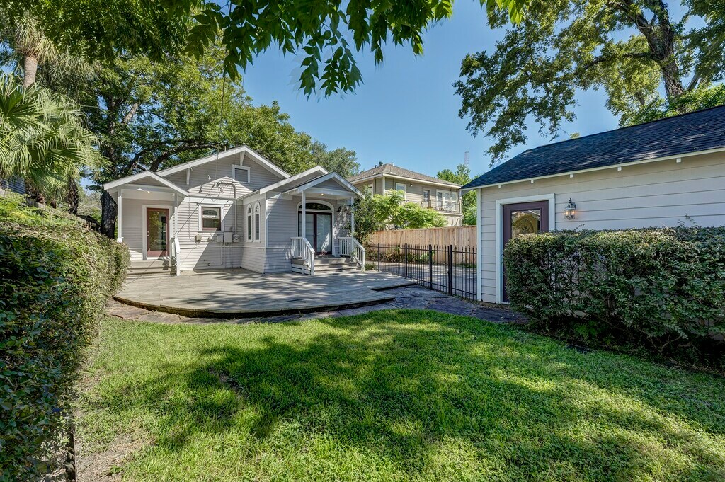 Come in and see this beautifully crafted-style bungalow 2 bedrooms 2 baths,2-car garage in the heart of Houston's Montrose,Rice University,Medical Center,Museum District,Downtown and St. Thomas. Going up steps to enter this home,you will see a large relaxing porch to enjoy your favorite beverage. This home has been updated,but still has the charm with gleaming hardwoods throughout,stained glass on each side of the fireplace,French doors,ceiling fans and bookshelves. Next room is your formal dining,which has lots of windows that brings in such soft and bright light. Next is your updated kitchen with gas cooking,lots of wonderful storage,cabinets,breakfast island and all of your great appliances. Both bathrooms have been updated. Primary bathroom has double sinks,soaking tub,shower and huge closet space. Primary bedroom is large and so relaxing with French doors that go out to your brand new deck to have your morning coffee. All per owner MLS# 61917785