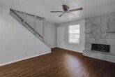 This charming townhome in Cleburne ISD welcomes you with a cozy living area adorned by a beautiful stone fireplace. The kitchen, equipped with modern appliances and ample cabinetry, is adjacent to the living space. A separate utility room offers convenience and storage solutions for your washer, dryer, and essentials. Upstairs, discover a spacious primary suite with ample closet space alongside a secondary bedroom and a full-sized bathroom. Luxury vinyl flooring in common areas and plush carpeting in bedrooms provide comfort and elegance. Step outside to the backyard enclosed by privacy fencing accessible through the backdoor within the kitchen and dining space for added convenience.