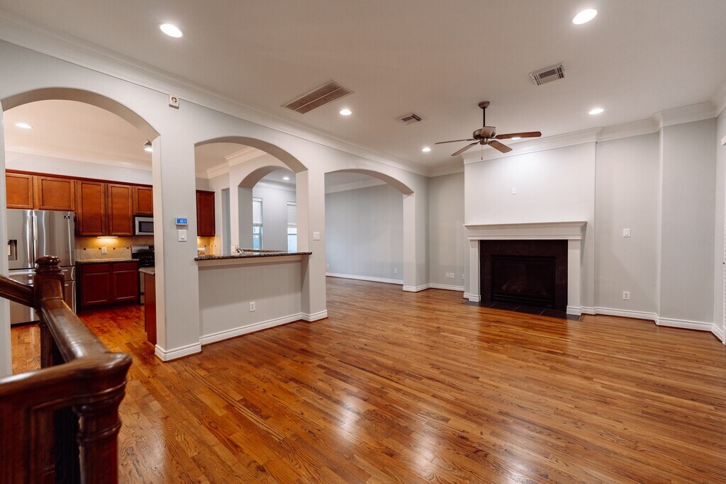 Step into this beautifully maintained three-story home located in an exclusive gated community just minutes from Houston’s top dining,shopping,and entertainment. Tucked away at the end of the street for extra privacy,this spacious property offers 3 bedrooms,3.5 bathrooms,and an open-concept design perfect for modern living. Enjoy cooking in a stunning kitchen featuring granite countertops,sleek cabinetry,and hardwood floors that flow seamlessly into the bright dining and living areas. Upstairs,you’ll find two generously sized bedrooms with soaring ceilings,abundant natural light,and spa-like bathrooms with ample closet space. This home boasts a larger floor plan than most in the community,giving you extra space to relax and entertain. Equipped with a refrigerator,washer,and dryer,this home is truly move-in ready. Don’t miss your chance to experience upscale living in the heart of Houston! MLS# 36089495