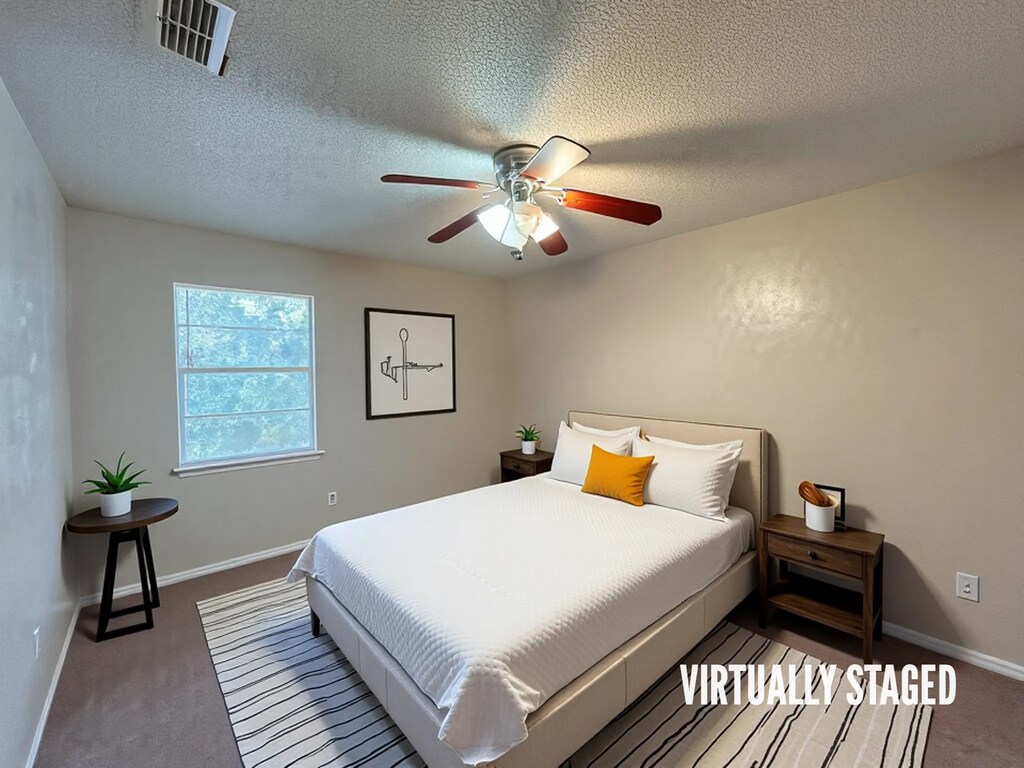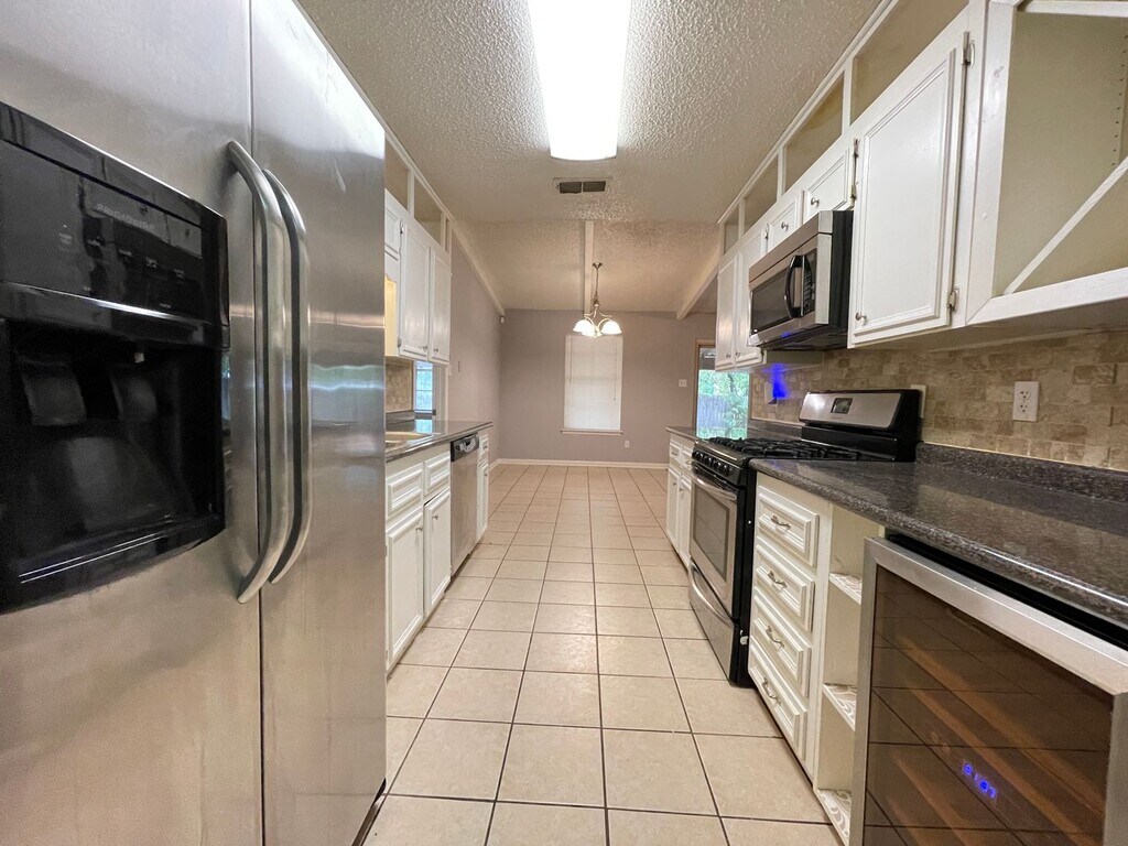 View 360 Virtual Tour: If you're looking for plenty of space, then look no further! This 3 bedroom, 2 bathroom home features over 1800 square feet! When you enter, you will see a beautiful wood flooring and a wood burning fireplace. The kitchen has modern updates with granite countertops, stainless steel appliances to include gas stove, fridge, dishwasher, and over the range microwave, and white cabinets. The large backyard is surrounded by a privacy fence and has a covered patio, perfect for BBQ's and get togethers! Mature trees provide a lot of shade for hot summer days. Disclaimer: The furnishings or enhancements shown are AI-generated and intended for inspiration only. They may not reflect the actual scale, condition, or current features of the property.