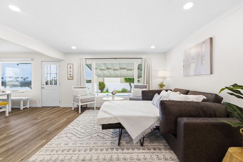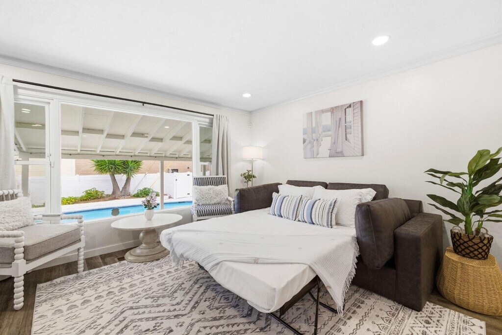 Unbeatable bay views and coastal charm! This sunny Bay Park house offers sweeping Mission Bay vistas and nightly SeaWorld fireworks. Enjoy a fully renovated kitchen with quartz counters and stainless appliances, sun-filled living spaces, modern baths, and new luxury flooring. Relax in your private backyard with a sparkling pool! Minutes to Mission Bay, dining, and coffee shops. ______________________________________________________________________________________________________ ELYSIAN PADS HAS FURNISHED UNITS AVAILABLE FOR RENT ACROSS ALL OF SAN DIEGO. "Pricing subject to seasonality & availability".