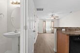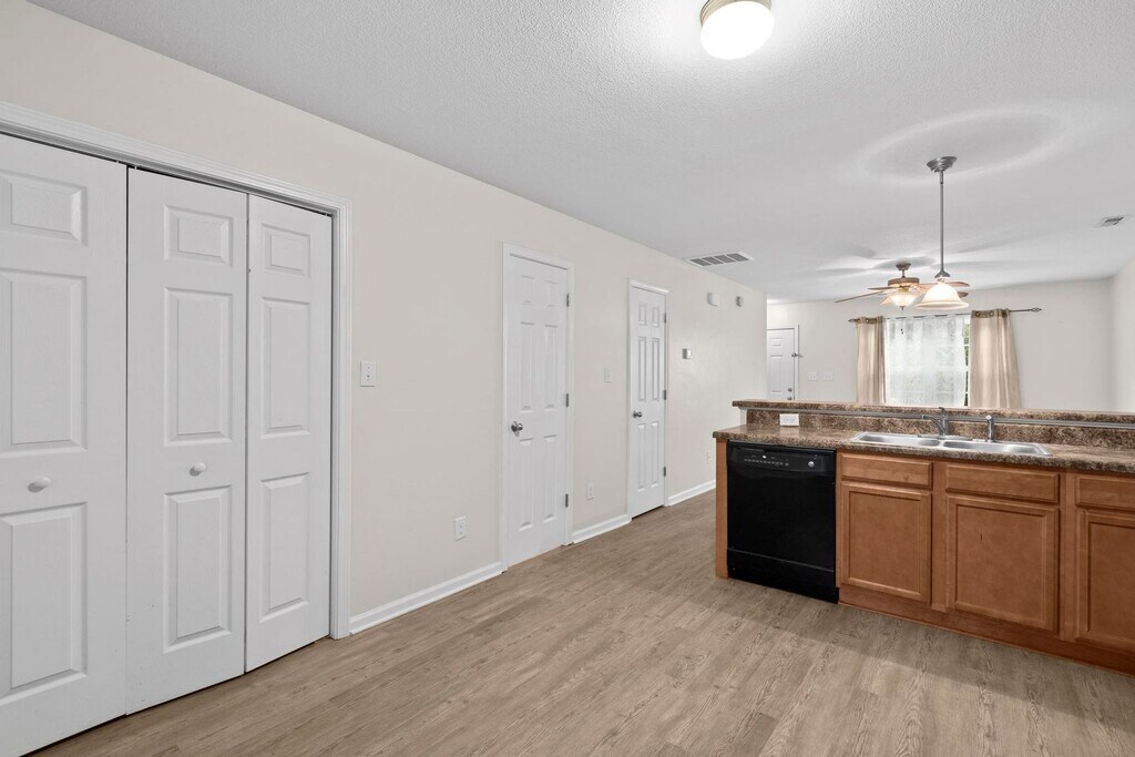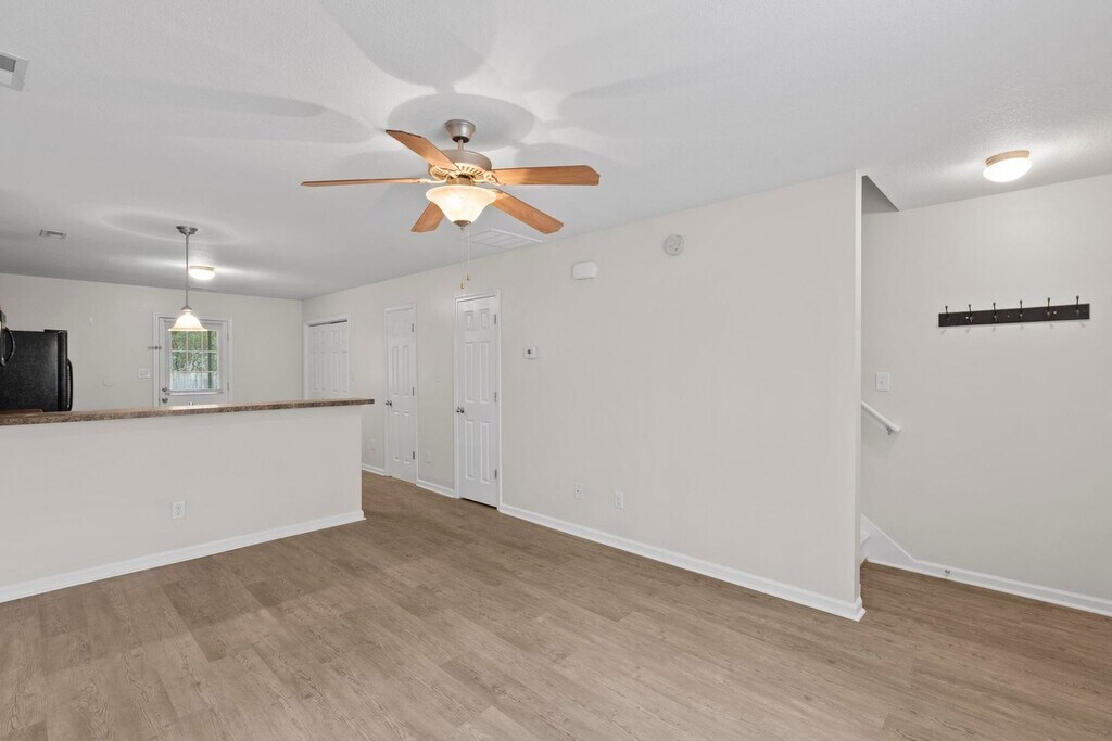 Welcome to this adorable 2BR 1.5BA townhome with gorgeous LVP flooring throughout! Tucked into Sneads Ferry, this home has a cozy, residential feel while still being just a 7-minute drive to the North Topsail beaches and only 2 minutes from local shops, grocery store, etc. Through the front door, a welcoming living space flows into the kitchen with an eat-in bar. Also downstairs is a half-bath, a separate laundry room with W/D hookups, and a door to the private screened-in back patio (with lockable storage room as well!). Upstairs, you'll find 2 spacious bedrooms and a large full bath with a double sink vanity. Clean and charming, you won't want to miss this one! *Pet friendly with owner approval and monthly pet rent.* We strive to provide an experience that is cost-effective and convenient. That’s why we provide a Resident Benefits Package (RBP) to address common headaches for our residents. Our program handles insurance, identity protection, pest control, air filter changes, utility set up, credit building, rent rewards, group rate internet, and more at a rate of $53.95/month or $68.95/month with pest control, plus $65.00 for group rate internet/month, added to every property as a required program. More details upon application. Most homes come with high speed internet up to 1 Gig at a special group rate, with premium support and setup to get you connected fast at move-on.