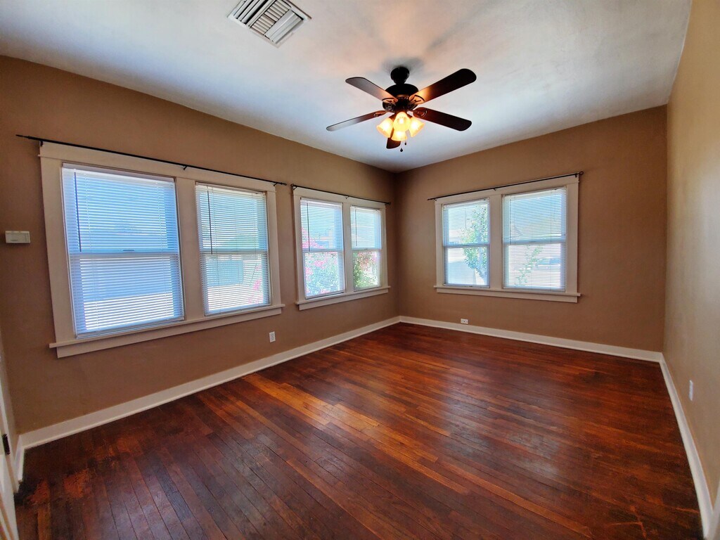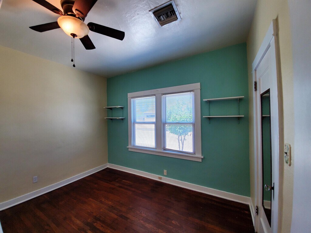 Absolutely adorable historic three-bedroom, one bath home with modern touches and historic charm! This is a six-month lease that rolls over into a month-to-month. If you need a longer lease term, we can discuss additional options. This home has been beautifully updated with granite countertops, SS gas range, and a granite-top kitchen cart/island. The bathroom has a granite-top double-sink vanity and updated tub/shower. So much of the historic charm has been preserved in the wood floors, trim, and accents, including the decorative fireplace with accented candle sconces. Great corner lot with private off-street parking and automatic gate entrance. Electric/Water is a flat fee added monthly. Casita is under separate management.
