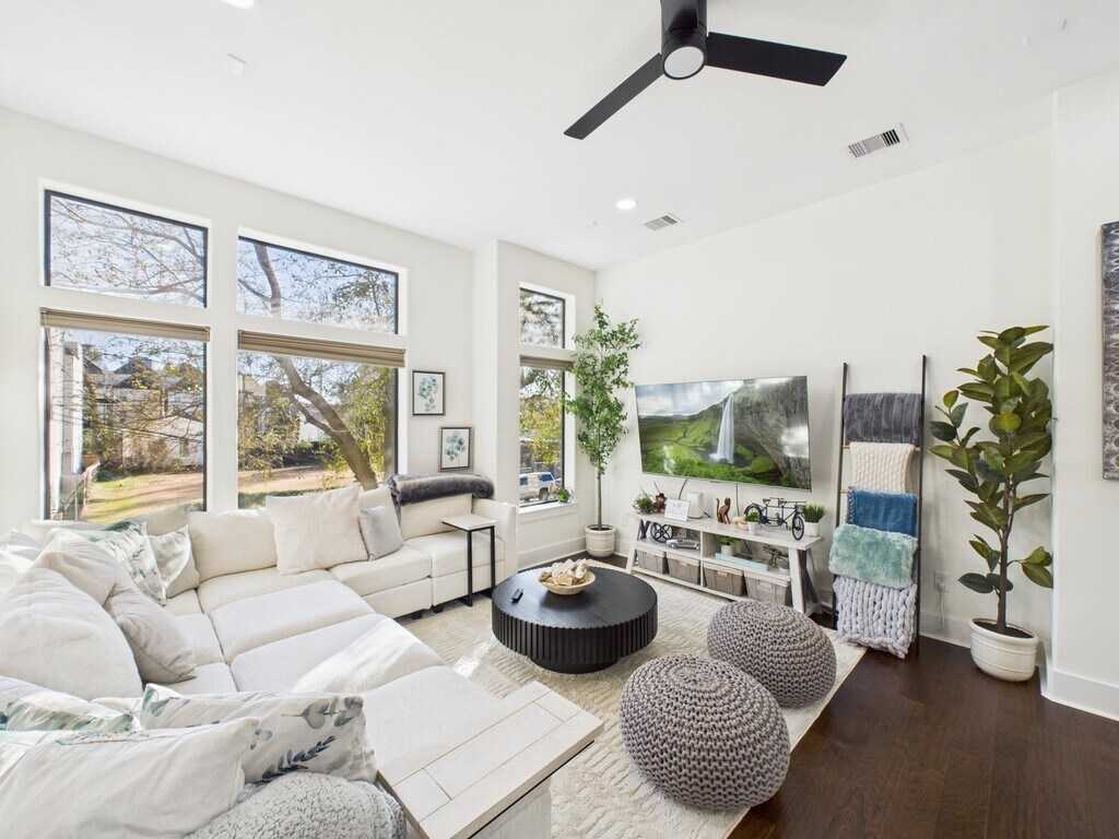 Magnificent Three Bedroom,Three and a Half Bedroom Townhome,Fully Furnished,For Lease. Modern Yet Comforting Aesthetic with Great Natural Lighting Throughout! One Bedroom Down w/En-suite Bath and Walk-in Closet. Open Concept Main Living Area on the Second Floor with Hardwood Flooring Lots of Windows! Sleek Kitchen with Huge Central Island for Entertaining. All Stainless Appliances with Gas Range,Wall Oven & Microwave. Primary Suite on the Third Floor and a One Bedroom with En-Suite Bath. Generous Primary Bedroom Features a Juliet Balcony and a Luxe En-Suite Bath with Dual Vanities,Jetted Tub & Stand Alone Shower. Fourth Floor Rooftop Deck for that Wow Factor. Bring Your Entertaining Outside with View of Downtown. Prime Location with the Height Hike & Bike Trail Steps Away. Gated Community for Additional Comfort. Check Out the Virtual Tour and Schedule a Viewing! Short term rental options available! MLS# 48636426