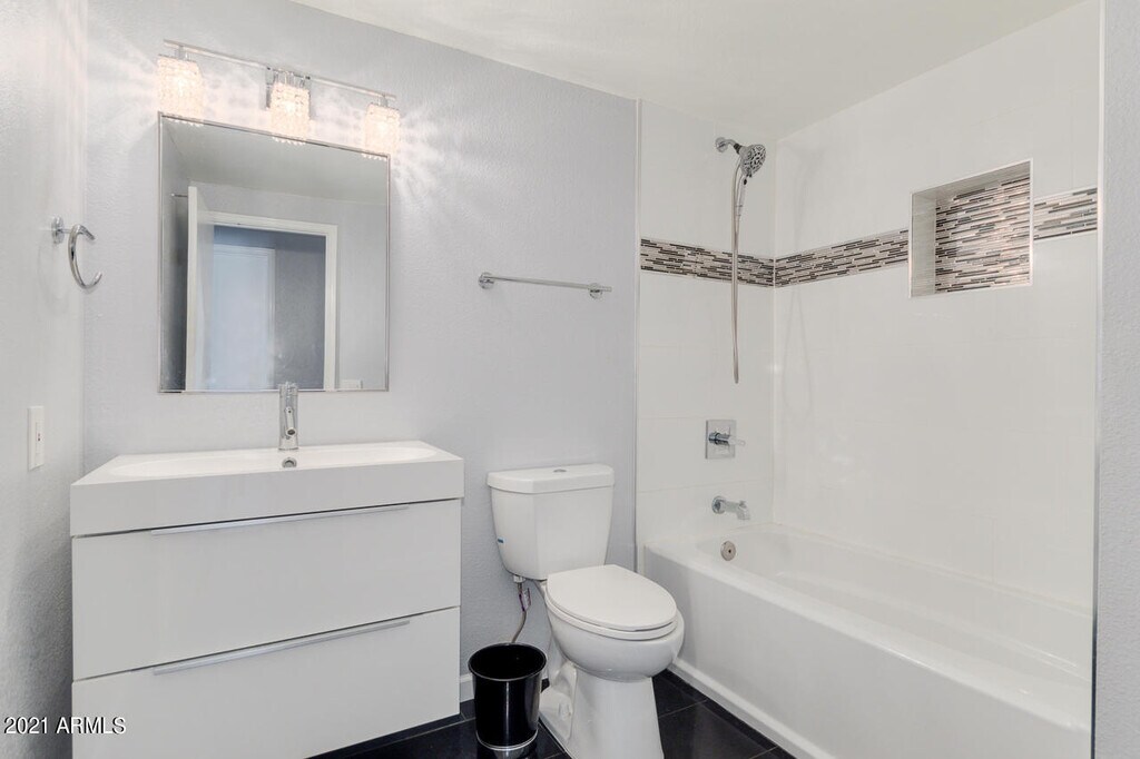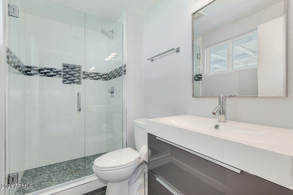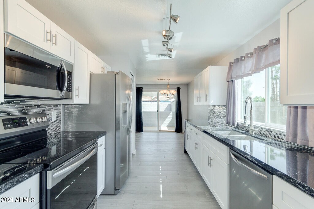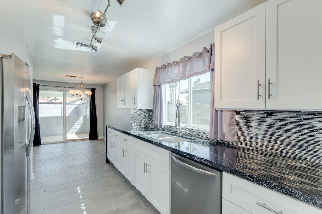 Beautifully updated home in the heart of desirable Chandler! Combining modern upgrades with timeless charm,this property is sure to impress. Featuring a well-maintained exterior,a low-maintenance front yard,and a 2-car garage. Step inside to bright and inviting living spaces featuring neutral tones and tile flooring throughout. The updated kitchen is a true highlight,boasting sleek white cabinets,slab granite countertops,a mosaic tile backsplash,a pantry,stainless steel appliances,and a cozy dining area with patio access. The primary suite offers ultimate comfort with its private exit,a custom-tiled walk-in shower,and a walk-in closet. Outside,the fully fenced backyard is designed for both relaxation and practicality!