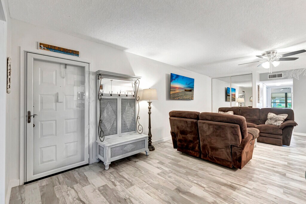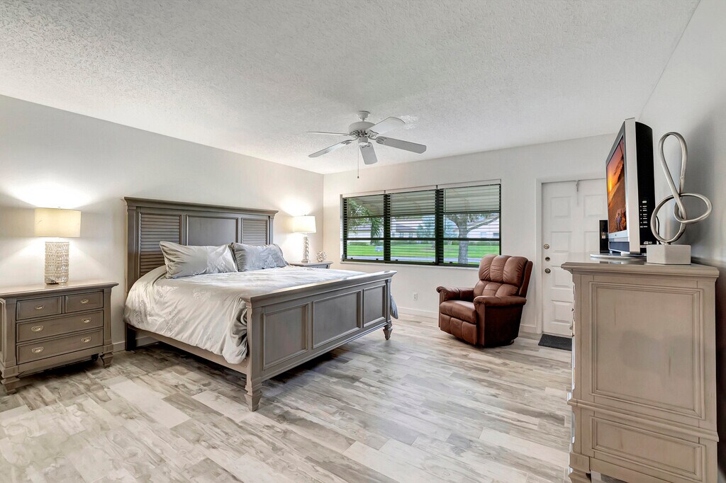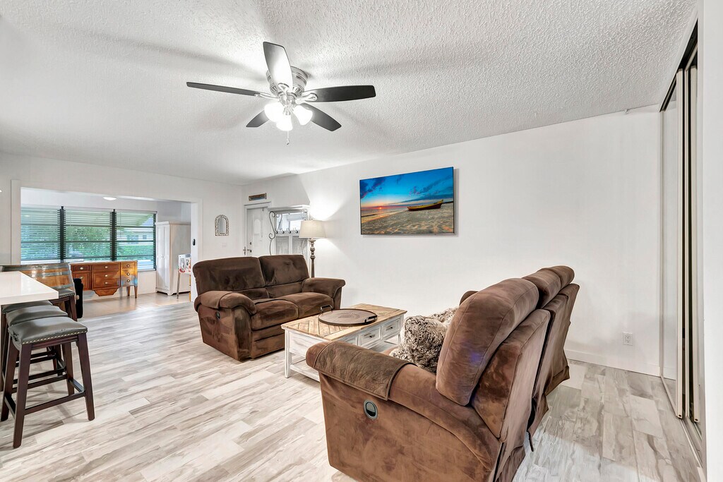 Beautiful turnkey villa featuring 1 bedroom, 2 bathrooms, plus a converted den used as a 2nd bedroom. The open living floor plan includes a bright, updated kitchen with quartz countertops, stainless steel appliances, and bar seating for four. Both bathrooms have been renovated with new tile, vanities, and countertops. The primary suite offers walk-in closets and a private patio with outdoor seating. Located in a 55+ community with amenities including pool, clubhouse, shuffleboard, and tennis courts. Convenient to shopping, dining, Atlantic Avenue, and the beaches. Available for fully furnished for annual rent or for season (3-month minimum rental.)