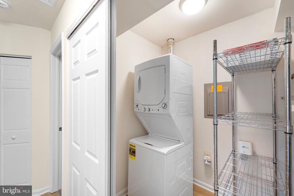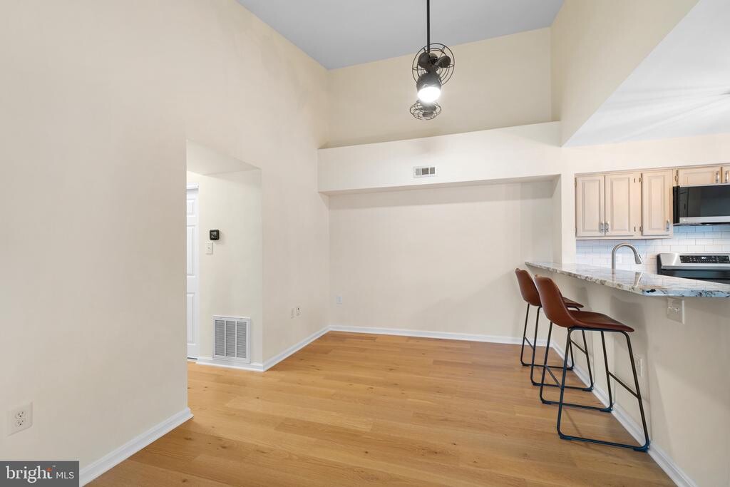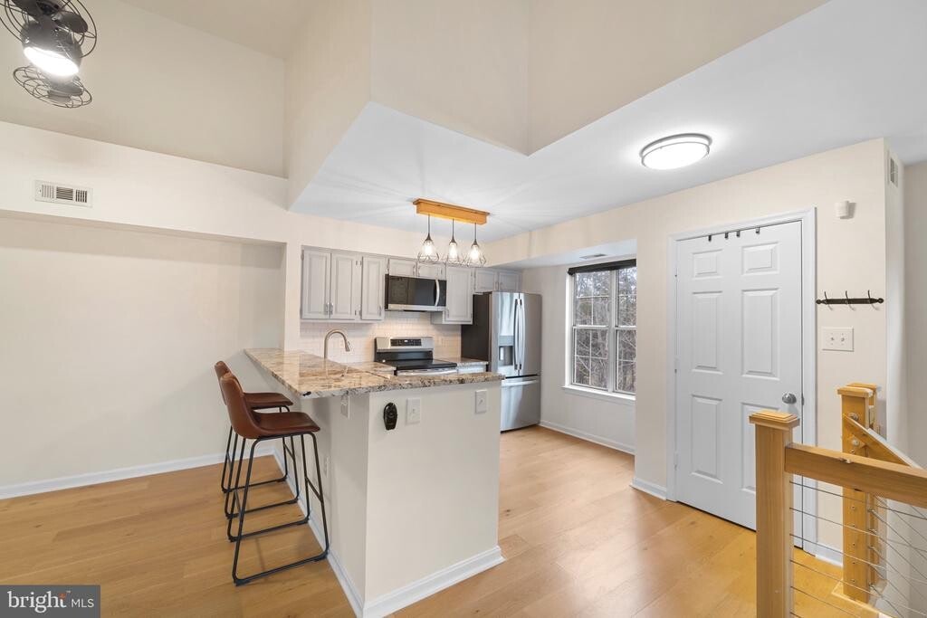 This beautifully renovated two-bedroom, one full and one half bath condo offers stunning water views in a prime Gainesville location. The open floor plan features vaulted ceilings in the living and dining areas, creating a bright and airy atmosphere. Rich bamboo flooring runs throughout the home, complemented by a modern railing that enhances the space. The updated kitchen includes soft-gray cabinetry, granite countertops with a bar overhang (bar stools included), and new stainless steel appliances (2024). Both bathrooms have been redesigned with modern vanities and contemporary finishes. A new stackable washer and dryer (2024) provide the convenience of in-unit laundry. Step outside to the covered balcony, enhanced with a privacy lattice, sunshade, and a dedicated storage room. Enjoy breathtaking lake views from the deck and from nearly every window inside the home. The condo includes one assigned parking space, along with ample unassigned visitor parking throughout the community. Ideally situated just minutes from shopping, dining, and entertainment and offering quick access to I-66 and Route 29. This move-in ready condo places you in the heart of Gainesville. A wonderful place to call home.