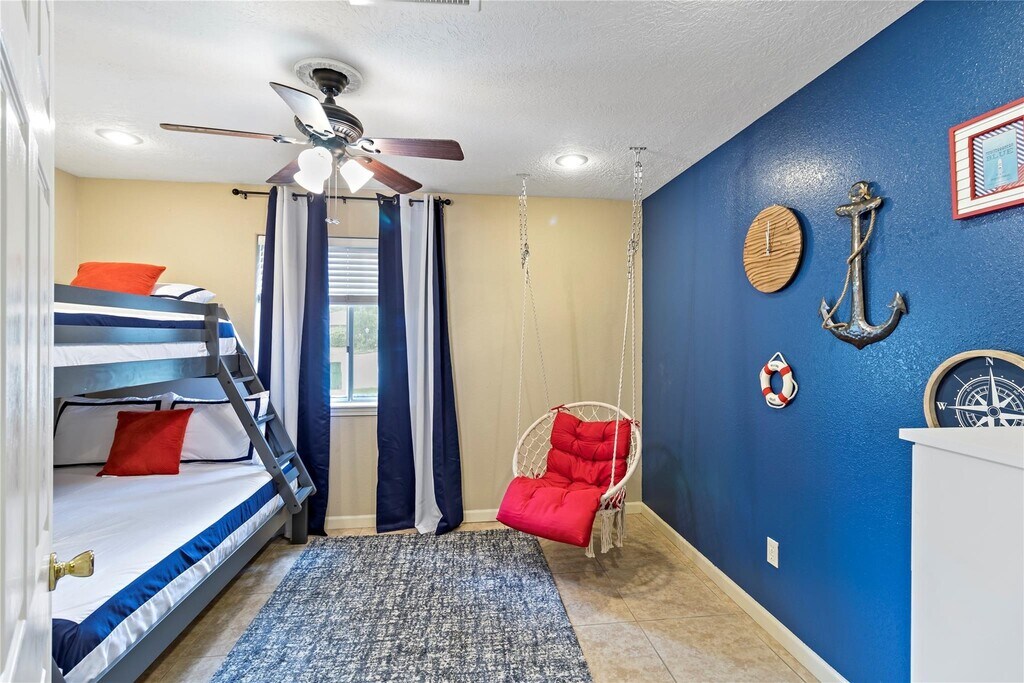This home is offered FULLY FURNISHED and is located on a spacious cul-de-sac lot. Designed with a desirable split floor plan,the layout provides both comfort and privacy. The bright kitchen features two large windows that fill the space with natural light and plenty of storage space. Step outside to a beautifully landscaped backyard complete with a sparkling pool,covered back patio,and ample room for entertaining or relaxing. The garage has been thoughtfully converted into a game room,creating a flexible space ideal for recreation,entertainment,or quality time with loved ones. Within walking distance,you'll find a library,community park with a pool,basketball court,and scenic walking trails for outdoor enjoyment. Plus,the home is just minutes away from the Kemah Boardwalk,and easy access to dining,shopping,and waterfront entertainment. MLS# 20907983