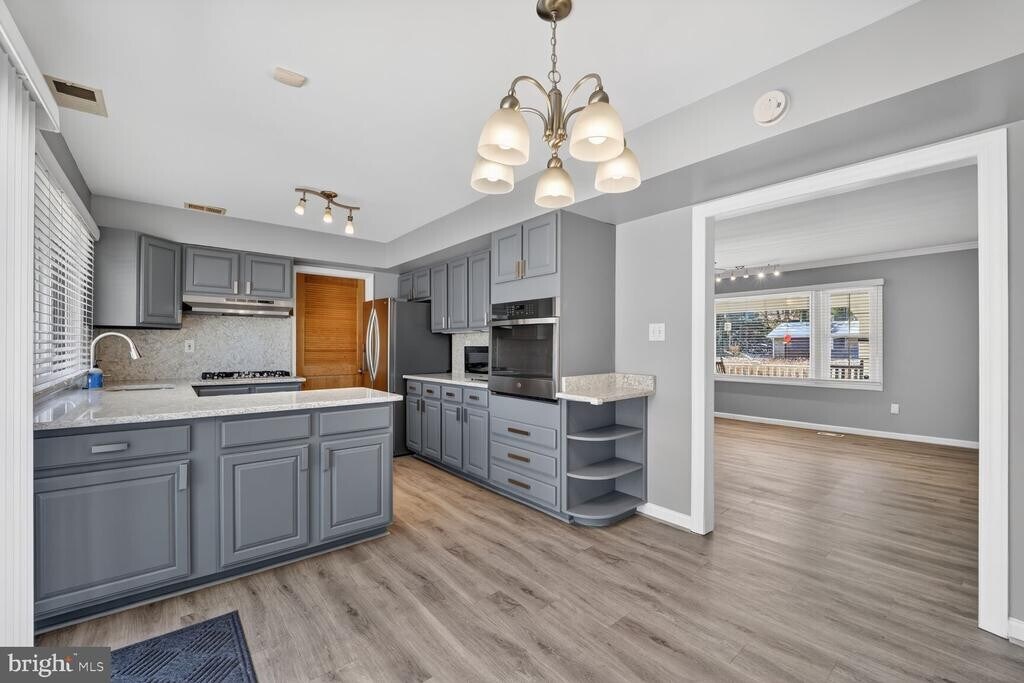 Welcome to 1405 Pennington Lane in Bowie, Maryland, a beautifully maintained four-bedroom, two-bath single-family home offering space, comfort, and convenience in a highly sought-after location. This two-level home features luxury vinyl plank flooring on the main level and comfortable carpeting upstairs. Freshly painted and move-in ready, the home offers a clean, bright interior that feels welcoming from the moment you step inside. The updated kitchen is designed for both function and style, showcasing granite countertops, stainless steel appliances, a gas cooktop, and a double oven perfect for everyday living or entertaining. Spacious living areas provide flexibility for family gatherings, work-from-home setups, or relaxing evenings in. Step outside to enjoy a large backyard with a patio deck, ideal for outdoor dining or weekend gatherings. The property also includes a two-car garage and an extended driveway with space for up to four additional vehicles, offering plenty of parking. A generous front yard adds to the home’s curb appeal. Located in the heart of Bowie, just minutes from Church Road, Route 301, and major commuter routes, this home offers convenient access to Washington, DC, nearby shopping, dining, and everyday essentials. This is a well-cared-for home seeking the right tenant who will appreciate the space, location, and comfort it provides. If you are looking for a long-term place to call home in Bowie, this property is a must-see. Contact the listing agent today to schedule your private tour.