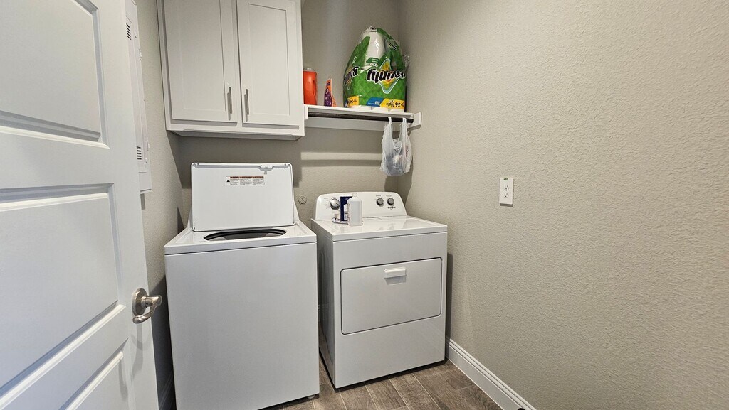 Beautiful 4-bedroom, 2-bath modern home in Denton with excellent curb appeal and a clean farmhouse-style exterior. The home features a bright, open-concept layout with high ceilings, recessed lighting, durable wood-style flooring throughout the main living areas, and energy-efficient appliances that can help reduce utility costs. The spacious kitchen includes a large center island with seating, white shaker cabinets, stainless steel appliances, a gas cooktop, a built-in oven and microwave, subway tile backsplash, and a walk-in pantry. The open living and dining area is filled with natural light and offers ample space for entertaining or relaxing. The primary suite is private and spacious, featuring a large walk-in closet and an en suite bathroom. Three additional bedrooms are well-sized and flexible for guests, office, or family use. Dedicated laundry room with washer and dryer connections. Two-car garage, fenced backyard, and covered front entry. Modern finishes throughout and well-maintained, offering a comfortable and adaptable living space. Located in a quiet neighborhood with easy access to shopping, dining, schools, UNT, TWU, and family-friendly parks. Available now (1-2 week for owner to move out from date of desired move in).