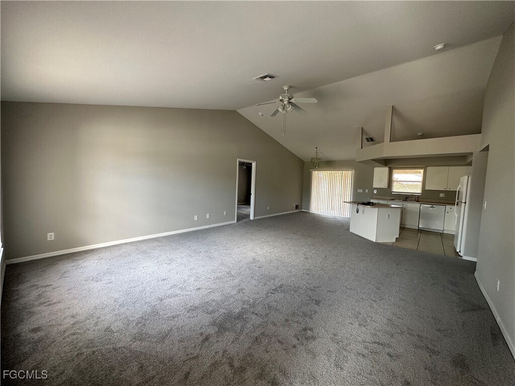 Ready to move in now. 4 bed 2 bath SFR in Cape Coral. Brand new Carpet and freshly painted exterior and interior. 1712 sq ft $1775 month + $1775 Security req'd to move in. SMOKING PROHIBITED. No pets. Washer and dryer included. Screened in patio. Electric,lawn and water resident's responsibility. "EQUAL HOUSING OPPORTUNITY