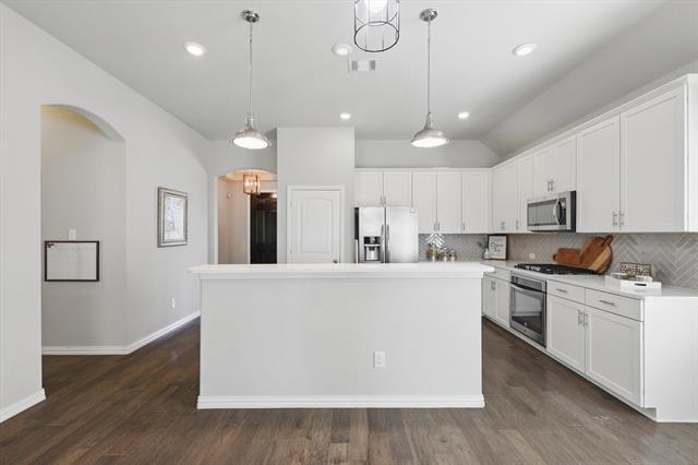 $25,000 EQUITY IN 1-STORY CANYON FALLS GEM Recently refreshed & move-in ready! This home offers incredible value. Appliances are negotiable, & front lawn care & high-speed internet are included! Step inside this beautifully designed single-story home in this desirable community of Northlake, featuring 3 spacious bedrooms, 2 bathrooms & a private flex room with French doors ideal for a home office, den or creative space. The open-concept floorplan is enhanced by nearly $30,000 in thoughtful upgrades: warm laminate hardwood floors, custom kitchen & bathroom cabinetry, sleek quartz countertops, a charming bay window in the primary suite & graceful arched details that add architectural character. A cozy fireplace creates a welcoming focal point in the living area, while the kitchen bar & dining space make entertaining effortless. The primary suite is a private retreat offering a spacious walk-in closet, oversized glass shower, deep soaking tub, privacy-enhancing rain glass windows & dual vanities. Outside, an extended covered patio provides the perfect setting for grilling, unwinding or gathering with friends & family. Beyond the home itself, life in Canyon Falls means access to a lifestyle designed for connection, convenience & the outdoors. The community offers more than 200 acres of preserved open space, miles of hike & bike trails & seasonal wildflower fields that showcase the area's natural beauty. Amenities include two resort-style pools, a splash pad, a modern fitness center, a beautiful clubhouse, multiple playgrounds, pocket parks & dog park for four-legged family members. Regular neighborhood events, food truck nights & community festivals create a welcoming atmosphere where neighbors become friends. Families will appreciate the highly regarded Northwest ISD, while everyone loves the convenient location - minutes to shopping, dining, & entertainment in Northlake, Argyle & Flower Mound.