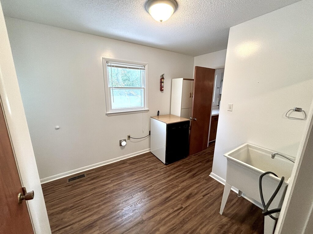 3BR, 2BA private farmhouse tucked just off the road on spacious wooded lot overlooking neighbor's beautiful pond. 1.5 story home with basement boasts ample space. Main floor features large living room w/gas fireplace + galley kitchen equipped w/range, refrigerator, and microwave + walkout mudroom includes dryer hook-up, mop sink, dishwasher, pantry and storage + nice open concept dining room + primary bedroom and a full bath! Upstairs you will find 2 additional bedrooms, full bath, and extra bonus room. Walkout basement with sunroom adds even more space and leads outside to the back yard. Home includes one car attached garage, one car detached garage, carport, and security system. This home is ideal for those seeking a haven from the hustle & bustle and desire for making their home in the country. No Pets. No Smoking. One year lease minimum. Tenants must apply to be screened and approved. Tenant pays all utilities, lawn care included. Private 1.5 story 3BR, 2BA farmhouse with basement tucked just off the road on spacious wooded lot boasts nice layout, ample space, and beautiful outdoor setting.