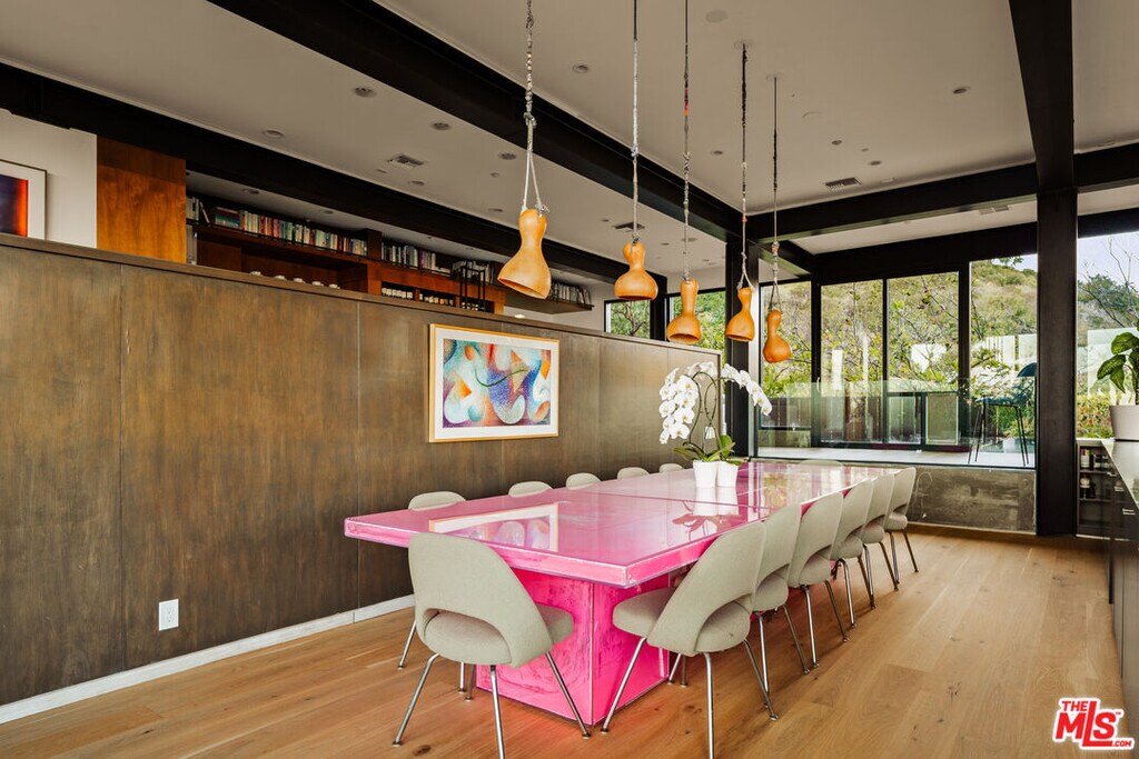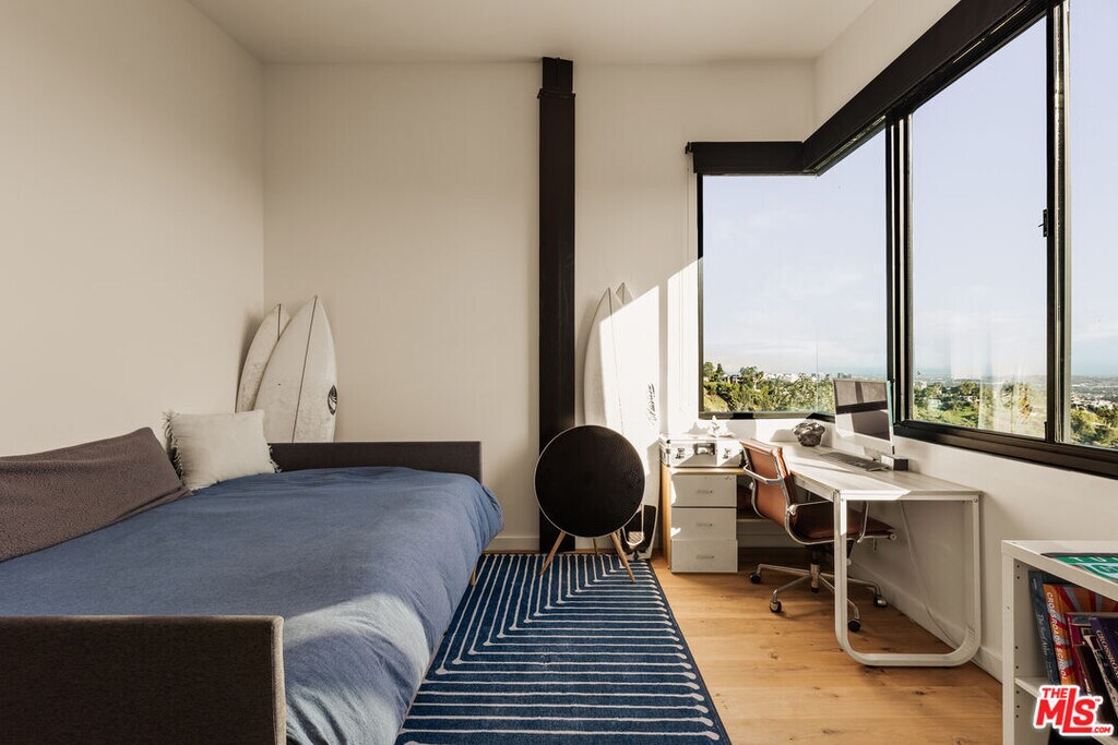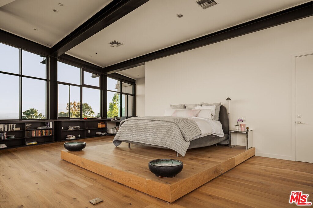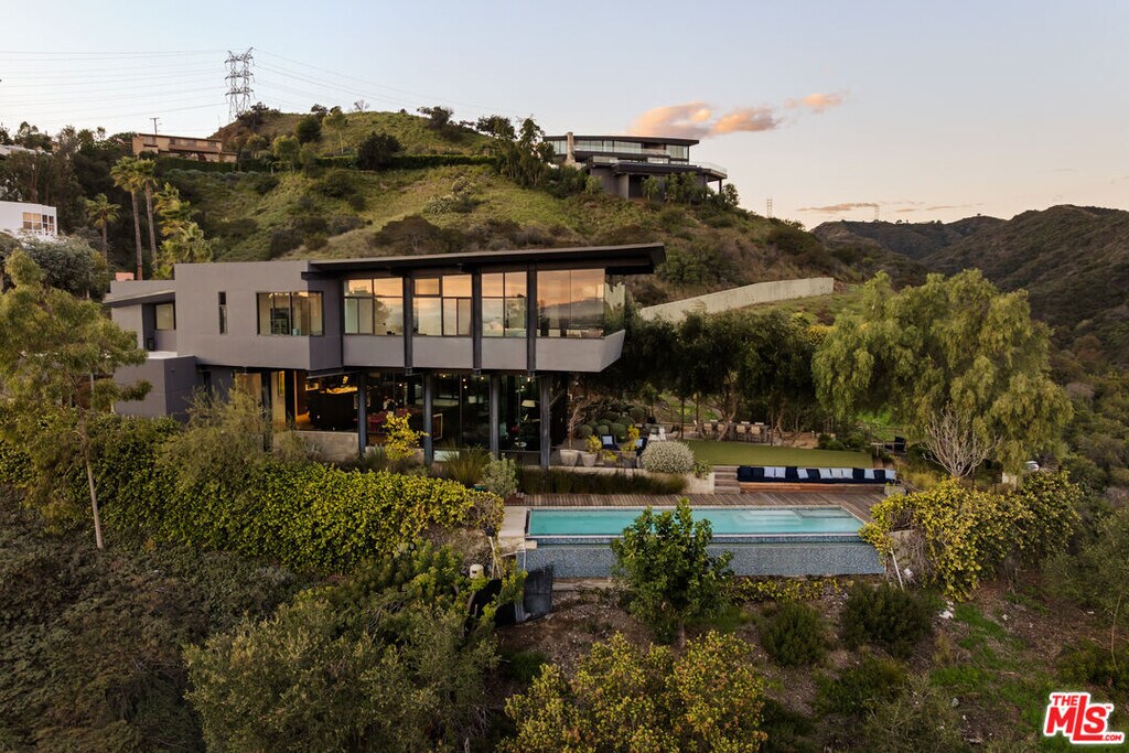 Designed and built as the personal residence of Hagy Belzberg, FAIA, this exceptional 5,000 square foot architectural home is a rare expression of a master architect building for himself. Belzberg's work, recognized internationally through decades of award-winning residential, cultural, and hospitality projects, has long explored the intersection of experimentation and livability. That philosophy is fully realized here, in a home conceived and built for personal use, free from the constraints of speculation, where every decision reflects the priorities of an architect designing for his own life. Set privately and securely, in a gated 4-home enclave, on a 2- acre lot with sweeping city and canyon views, the residence unfolds as a sequence of carefully calibrated spaces defined by steel framing, warm wood surfaces, and expansive walls of glass. Light, proportion, and circulation are methodically considered, creating a home that is both aesthetically singular and deeply comfortable. The main living level is conceived for both everyday living and sophisticated entertaining. Floor-to-ceiling walls of glass dissolve the boundaries between interior and exterior, opening to terraces, gardens, and a dramatic infinity-edge pool that appears to float above the landscape. Living and dining spaces flow effortlessly into a design-forward kitchen with custom millwork, professional-grade appliances, and generous storage integrated seamlessly into the architecture. Throughout the home, bespoke detailing reflects the sensibility of an architect's own residence: integrated shelving and libraries, curated sightlines, and thoughtful transitions between public and private zones. A private media room offers a cinematic retreat, while a dedicated gym provides a discreet wellness space, and a 3-station library/study area invites educational and occupational advancement. The primary suite is a serene sanctuary, framed by panoramic views and anchored by warm materials and clean lines. A spa-like bath, generous closets, and a sense of calm separation complete the experience. The three additional bedroom suites maintain the same level of design achievement and comfort. The outdoor spaces are equally intentional: layered terraces, intimate garden moments, and seating areas designed for both gathering and solitude. As day turns to dusk, the home glows from within, the architecture revealing its structure and rhythm against the evening sky. More than a residence, this is a self-authored work of architecture; a home conceived without compromise, where innovation serves livability, and design is meant to be inhabited, not merely admired. Located moments away from the coveted dining, nightlife and shopping on San Vicente and in Brentwood Country Mart and within some of the city's most highly acclaimed public schools (Kenter Canyon Elementary Charter, Paul Revere Charter Middle School and Palisades Charter High School). MLS# 25627631