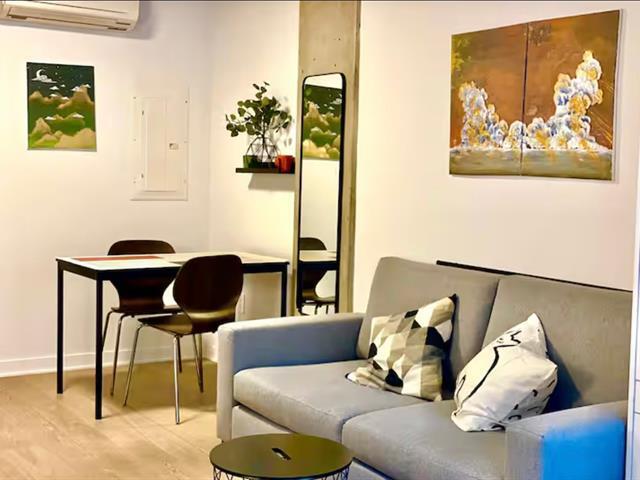 Furnished Studio in the Heart of Downtown Enjoy effortless city living in this fully furnished studio located in a prime downtown location. Move in with ease and benefit from a smart, space-optimized layout, modern furnishings, and proximity to public transit, shops, restaurants, and universities. Perfect for students or young professionals looking for comfort, convenience, and vibrant urban living all in one place. Unit Features: Furniture: Bed frame, Mattress, Dining table, Sofa, 4 chairs, 2 study desks, Bookshelves, Sideboard, TV, Floor lamp, Cookware, Curtains Lawn Appliances: Snow removal Utilities: Heating, Water taxes, Electricity, Hot water Building Features: Additional Information: Furniture is 80$/month, wifi is 60$/month No pets allowed 318 sqft Non-smoking (tobacco, cannabis, and any other substances) No Airbnb or short-term subletting Proof of $2M liability insurance required and confirmation of registration with Hydro-Québec before taking possession Conditional upon verification of the credit report and consent to verify payment habits, as well as references if necessary No subletting or lease transfer without the written permission of the owner Send us an inquiry for more information or to schedule a visit!