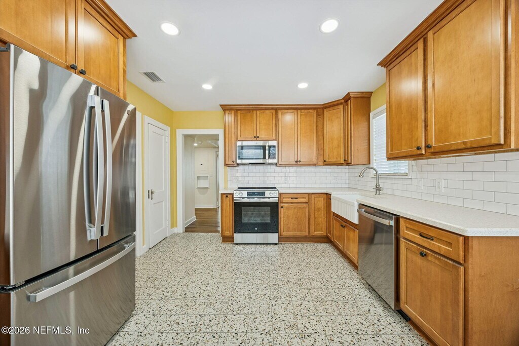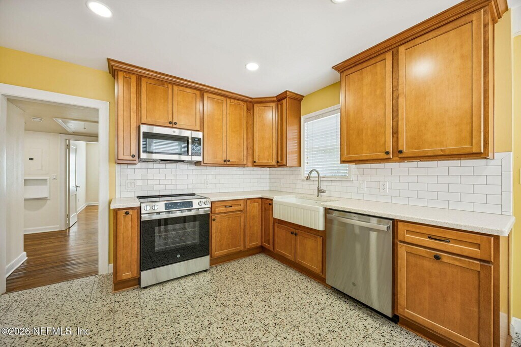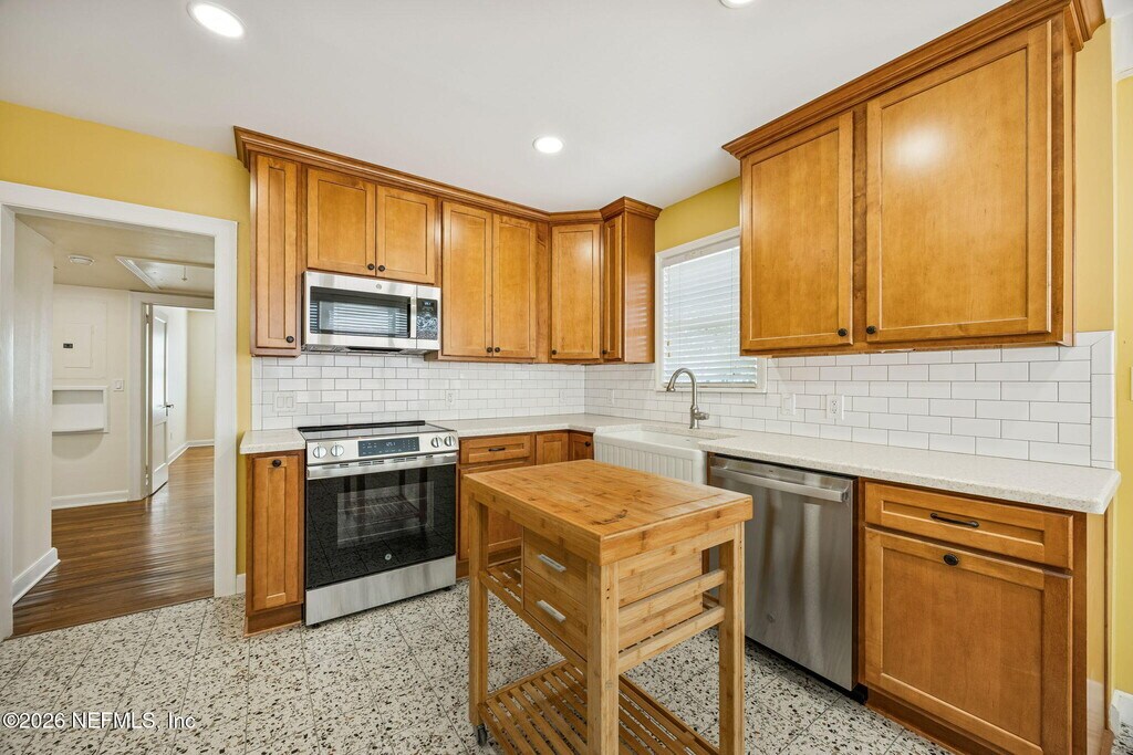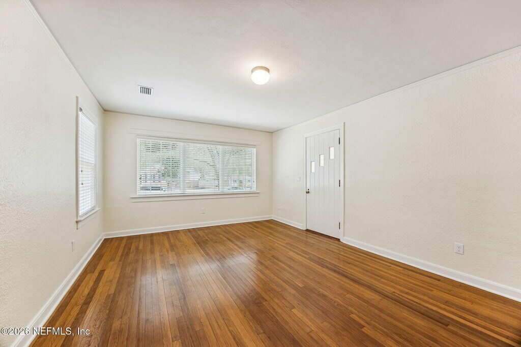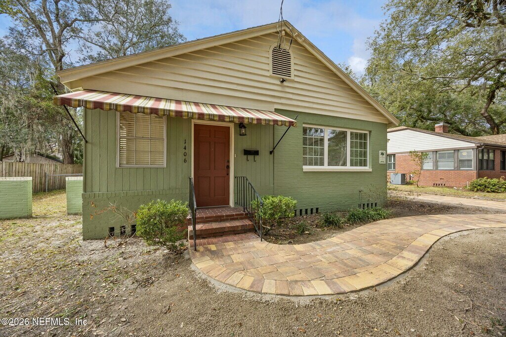 Discover this completely remodeled cottage in historic St. Nicholas,in the center of Jacksonville south of the St Johns River close to Downtown and the financial district. This charming bungalow features a formal living room w/ fireplace & dedicated space for a home office. The generous sized kitchen boasts solid surface counters,stainless appliances,and ''snazzy'' designer tile reflecting the home's vintage roots. Enjoy new hardwood floors,fresh paint,and a crisp black/white bathroom. Both bedrooms are oversized,w/ two closets in the primary. Outside find new pavers,a one-car garage all shaded by lovely oaks. High-efficiency upgrades,including foam insulation,tankless water heater & new appliances ensure lower utility costs. Modern luxury meets classic character in this must-see rental! MLS# 2130976