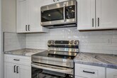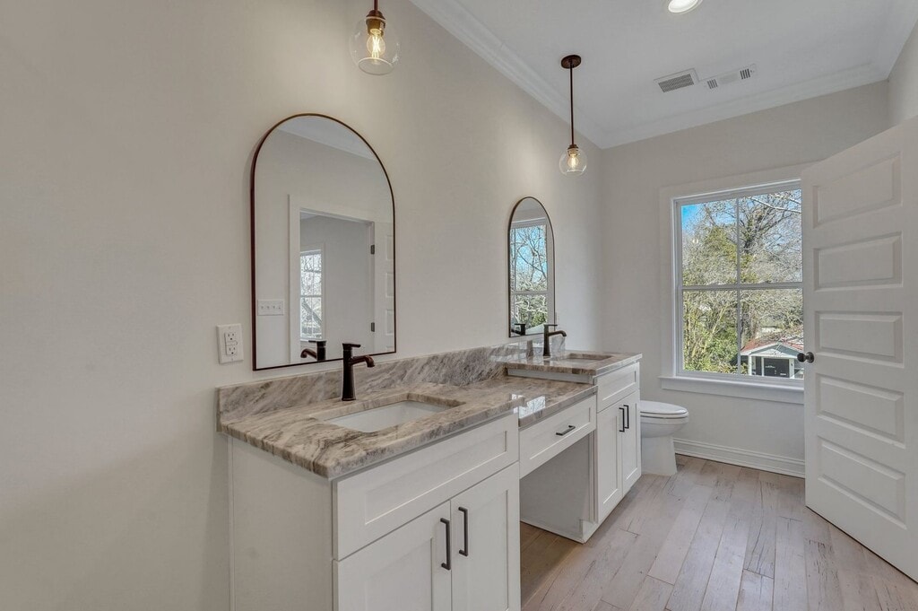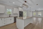 New Construction on Double Lot; modern & spacious living sits on a desirable double lot & features an open floorplan with high ceilings, offering an abundance of natural light & a sense of spaciousness throughout. The home boasts low-maintenance wood flooring, elegant quartz countertops, & upgraded moldings for a refined touch. The heart of the home is the kitchen, equipped with an eat-at island & generous walk-in pantry that provides ample storage space. Modern contemporary light fixtures enhance the home’s sleek design, while the owner’s suite offers a true retreat with a built-in walk-in closet & luxurious glass shower designed for two. With off-ground construction & spray foam insulation, this home is energy-efficient, ensuring comfort year-round. Enjoy outdoor living with both a covered front porch & covered back porch, perfect for relaxation and back yard has privacy fence.