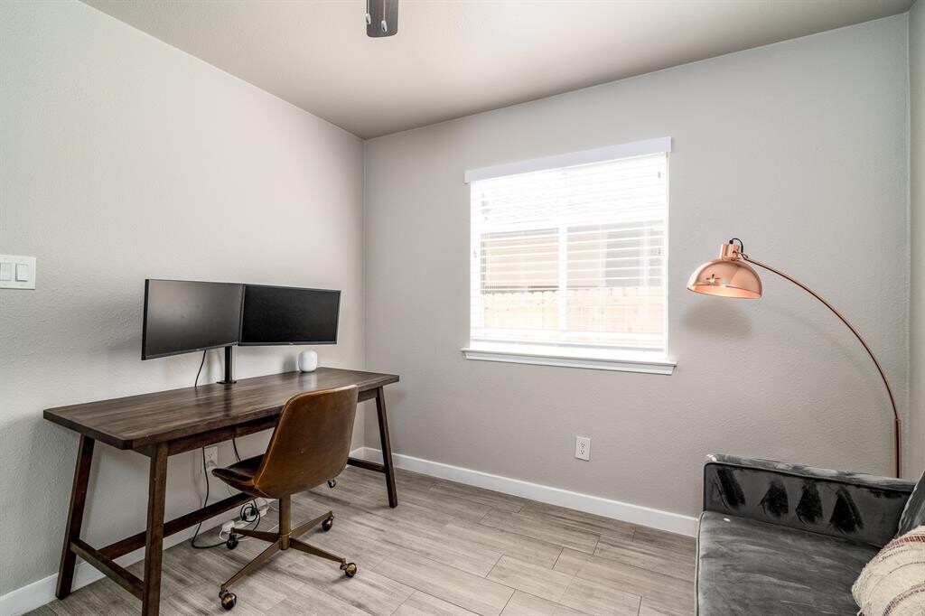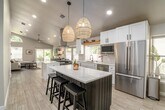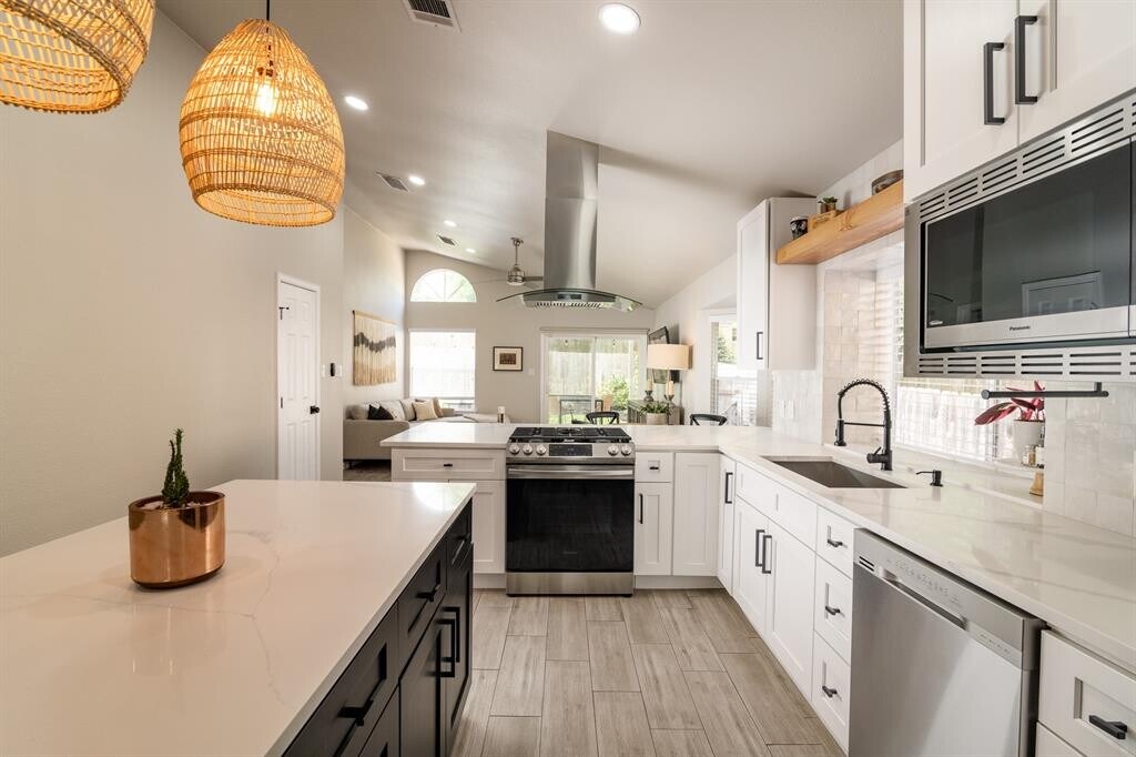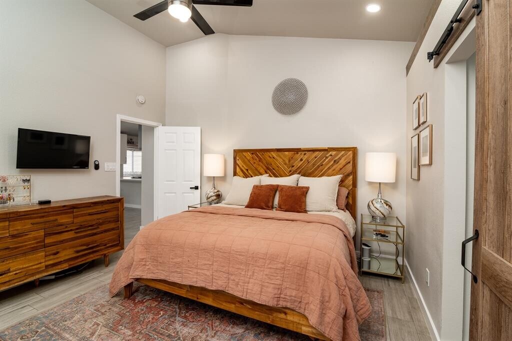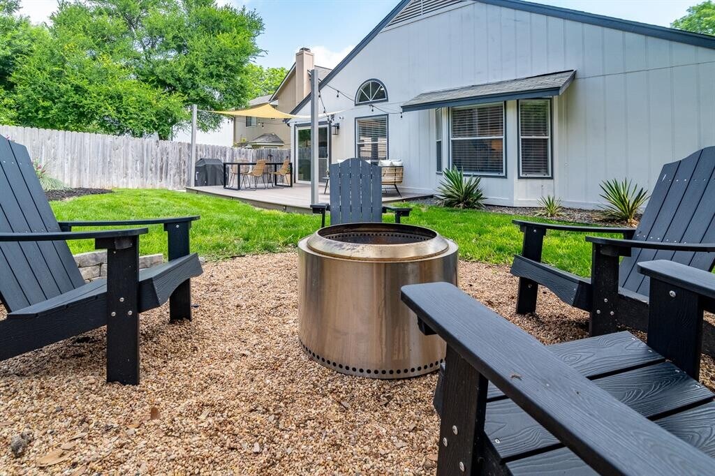 This beautifully remodeled home in The Park of Walnut Creek features 3 bedrooms, 2 full bathrooms, and a 2-car garage. The open floor plan boasts vaulted ceilings and abundant natural light creating a warm and inviting atmosphere. The gourmet kitchen opens to two separate living areas, perfect for entertaining. The Master Suite boasts barn doors, a walk-in closet, double vanities, and a luxurious, spa-like shower. The backyard is an oasis with a beautifully designed patio and a cozy fire pit, ideal for relaxing evenings and gatherings with friends and family. Community amenities include a pool, spa, and playground. Nature enthusiasts will love being close to 15 miles of hike and bike trails at Walnut Creek Park. This home is conveniently located just minutes from The Domain/Rock Rose, Whole Foods, Chinatown Center, the Arboretum, major employers, and shopping.