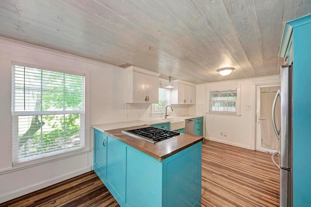 Exceptional East Austin 2/1, mere minutes to shopping, dining, UT, downtown, Mueller, Manor and I-35. Kitchen stuns with stainless steel appliances, including a Wolf range. 100 year-old long-leaf pine flooring inside and a large, fenced and open, entertainer's backyard. Free-standing claw-foot tub is featured in the generous bathroom. Ample living space and storage. This unique and gorgeous home is proximate to all things that make Austin awesome!