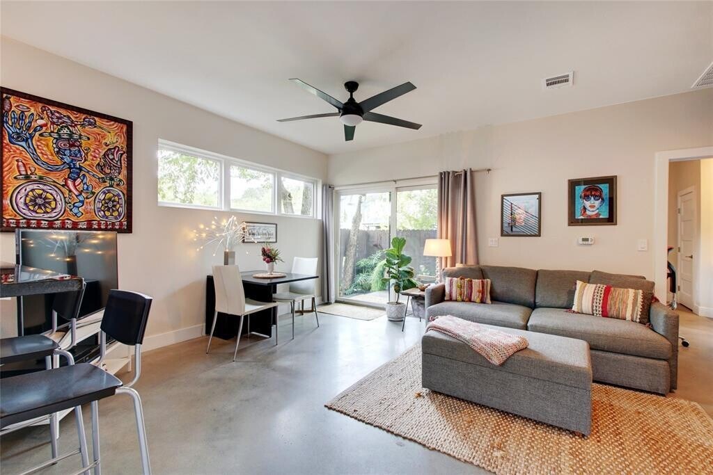 Fabulous contemporary rental unit #A in the heart of Brentwood. Short term lease of min 6 months is available Open airy floor plan includes tons of windows that drench this home with lots of natural sunlight. Kitchen features stainless steel appliances, island and breakfast bar. A single glass door leads to the serene patio, great for entertaining family and friends. Spacious Living/Dining area with lots of natural light windows! Atrium-style staircase that bring the outside inside along with 9 foot ceilings and its wall of windows that wrap around each corner with panoramic views. Sleek natural concrete floors on the main level transition to warm wood floors that go up the stairs and cover the 2nd floor. Spacious Master primary suite that leads to en-suite with a sparkling full bath, separate shower and double sinks and walk-in closet. Plus lots more! Mature tree shades the 1st & 2nd floor patios functional areas perfect for outdoor lounging and daily retreat spaces. Enjoy natural surroundings! Includes ample carport and an additional dedicated parking pad. Walking distance to shops, entertainment & dining close by on Burnet Rd! A quick drive will get you to Downtown, ABIA Airport, and all that Austin has to offer. Your relaxation getaway awaits. Make It Yours!