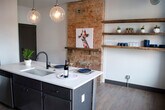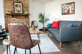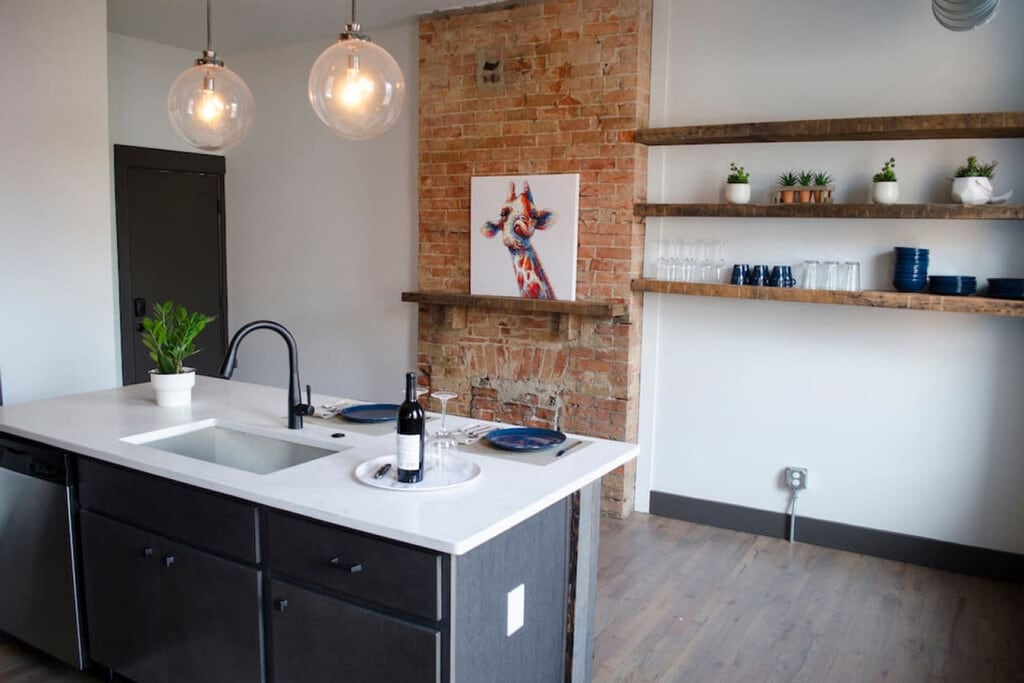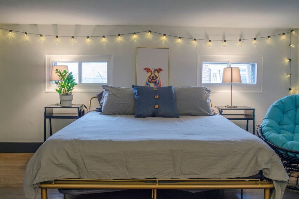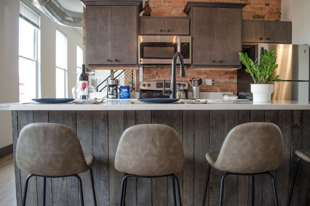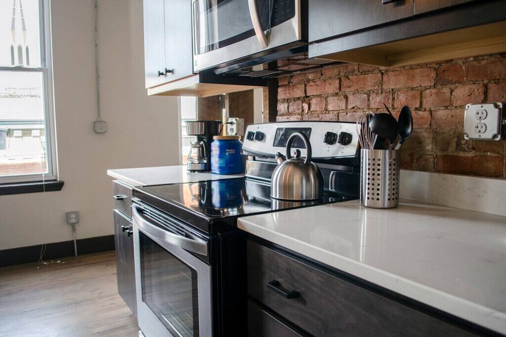Feel at home in this unique and newly renovated condo in the heart of Over the Rhine, Cincinnati. Located just two blocks from Washington Park and Music Hall, this third-floor apartment offers easy access to the city's best restaurants, bars, breweries, and Findlay Market. The historic 1870s building has been beautifully renovated, blending old-world charm with modern comforts, including exposed historic beams, refinished wood floors, and stainless steel appliances. Designed for socializing, the condo features a large open living area and kitchen with Carrara marble countertops and a bar that comfortably seats a family. The living room offers plenty of comfortable seating, including a sofa that converts to a sleeper bed. The kitchen serves as the perfect launching point for a night out or a cozy debrief with friends or family. The master bathroom is spacious, with designer fixtures and a skylight for natural light. All toiletries and normal amenities are provided. The apartment includes one free parking spot with a parking pass. Additional vehicles may park at cost in Washington Park Garage. Conveniently located, you can walk to Cincinnati's major sports venues, theaters, concert halls, convention center, museums, boutique shopping, bars, and restaurants. The vibrant neighborhood offers endless entertainment options, from Music Hall and Washington Park to a variety of nearby breweries and distilleries. Findlay Market, a regional destination, is just four blocks away. The apartment is on the third floor, and the bedrooms are on the second floor of the apartment. Parties and amplified music are strictly forbidden without advance written consent. Unauthorized parties are considered criminal trespassing under Cincinnati Municipal Code and may result in prosecution. Quiet hours are from 9:30pm to 8am. Smoking and open flames are not allowed, and violations may result in a $300 cleaning fee. A $170 re-keying fee applies for unreturned keys. Additional fees may be incurred for excessive cleaning or security issues. [SI]