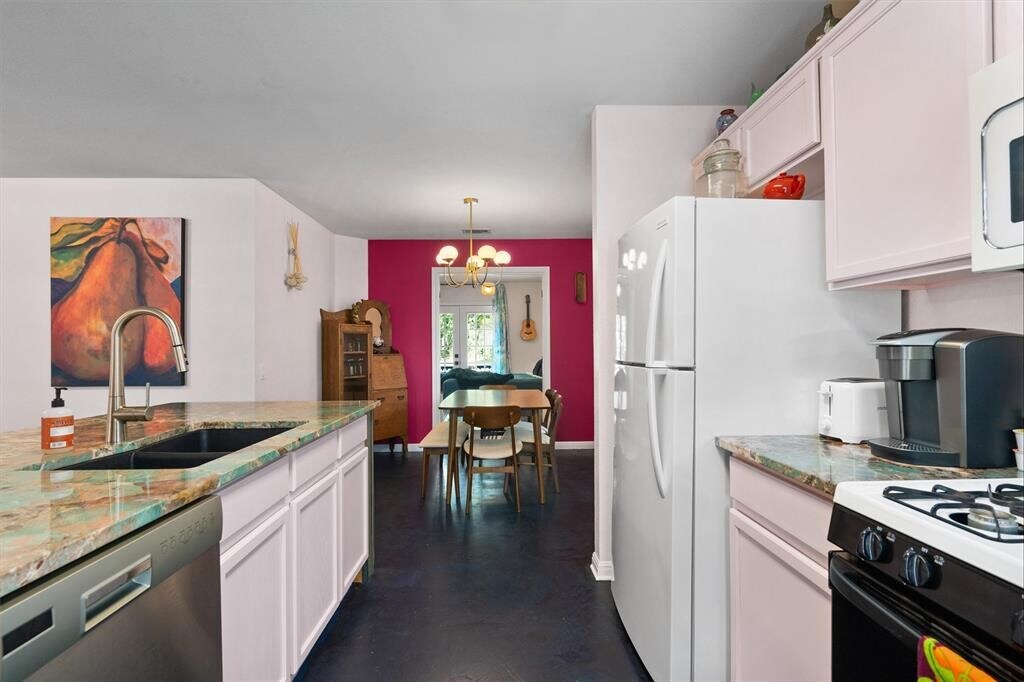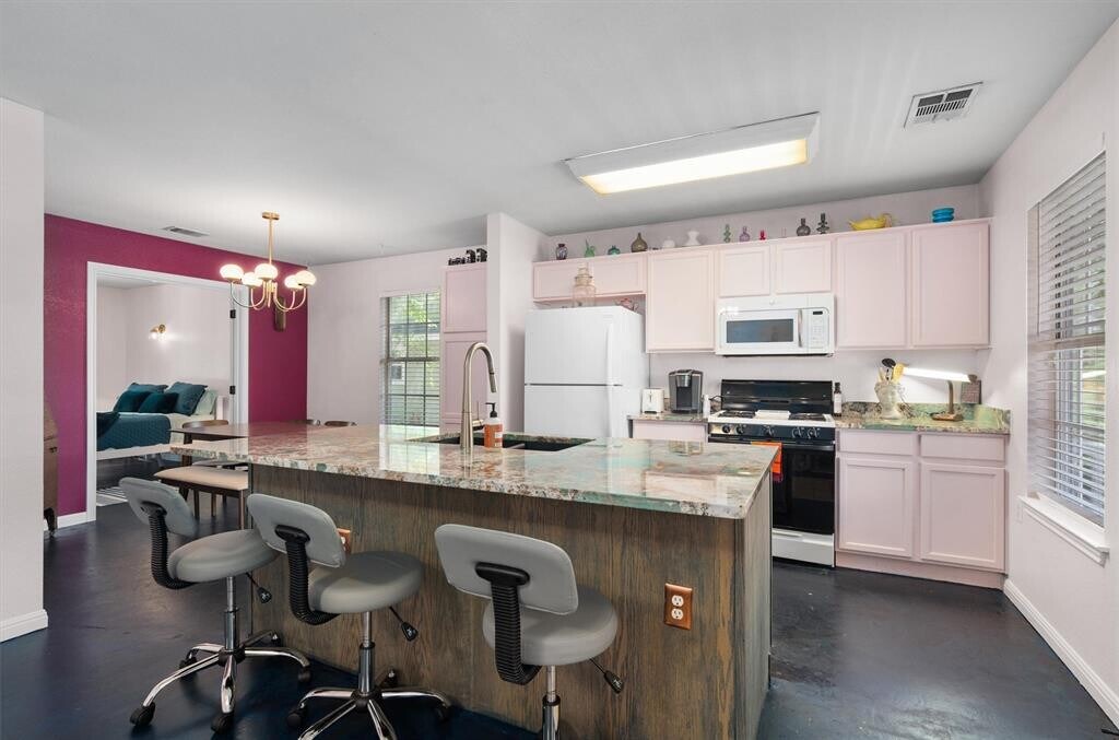 Turnkey East Austin Gem – 78702 – Fully Furnished & Available Now! Don’t miss this one-of-a-kind lease opportunity in the vibrant heart of East Austin. Nestled between E 12th St and MLK, you’re just steps from local favorites like Birdies, Sammataro Pizza, Zed’s Ice Cream, and Houndstooth Coffee. This single-story 3 bed, 2 bath stunner stands out with its ‘Pretty in Pink’ aesthetic—inside and out! A welcoming covered front porch sets the tone, while the interior pops with personality: blush-toned walls and cabinetry, a bold pink accent wall, and striking green granite countertops. Enjoy a seamless open layout with the kitchen flowing into the living and dining spaces, complete with bar seating at a spacious center island. Kitchen comes fully equipped with a gas range, fridge, microwave, and upgraded Samsung SS dishwasher. The dining area adds vintage charm with an antique hutch and mid-century modern table. The home includes a private primary suite with queen bed, walk-in closet, and ensuite bath. One guest room features a queen bed and French doors to the deck; the other offers full-size bunk beds. Both bathrooms include granite counters and tub/shower combos. Extras include a full laundry room with washer/dryer, a huge fenced yard perfect for pets or play, and multiple outdoor living spaces for relaxing or entertaining. Bonus perks include google fiber availability and desirable AISD schools. Just 2.5 miles to UT, a half-mile to the MLK MetroRail, 3 miles to Downtown, 7 to the airport, and 12 to The Domain. Live boldly in one of Austin’s most exciting areas—schedule your showing today! *Up to two pets allowed, 100lb max, with a one-time, $300 non-refundable fee per pet.* MLS ID 3141602