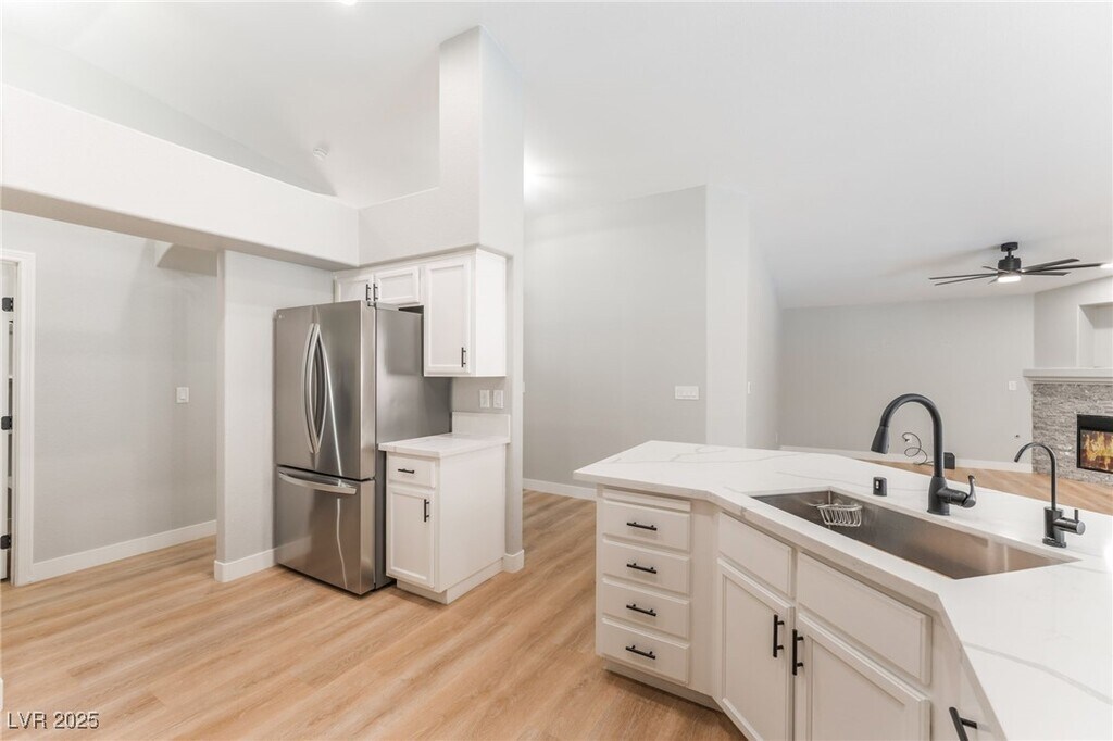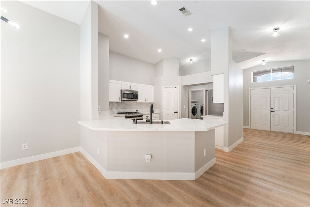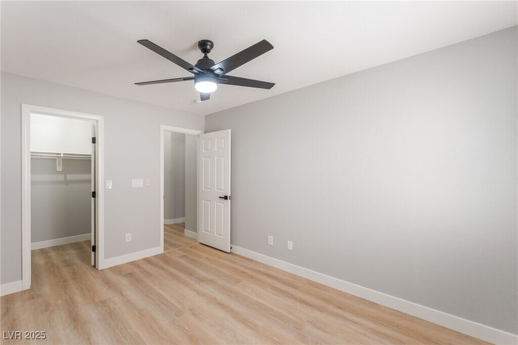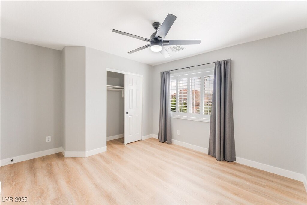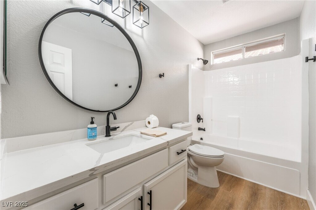 **MARKETING SPECIAL - 2 WEEKS FREE IF LEASED BY 10/15/25** This beautifully upgraded single-story home sits at the head of a peaceful cul-de-sac & offers 4 beds, 2 baths, & a 3-car attached garage with an extended driveway. Throughout the home, you'll find luxury vinyl plank flooring, custom plantation shutters to help keep the Vegas heat at bay, vaulted ceilings, & a gas fireplace in the oversized great room. The updated kitchen features modern appliances, quartz counters, bar counter seating, & a walk-in pantry. The private primary suite is thoughtfully separated & includes double sinks, a separate tub, & a separate shower. Step outside to a rare private backyard with an updated, low-maintenance desert landscaping, a large free-form pool with waterfalls, a relaxing hot tub, & a shaded patio area perfect for outdoor dining & grilling. Privacy security double doors at the entry & convenient access to Nellis AFB, major freeways, popular dining, & Shadow Creek Golf Course.