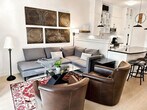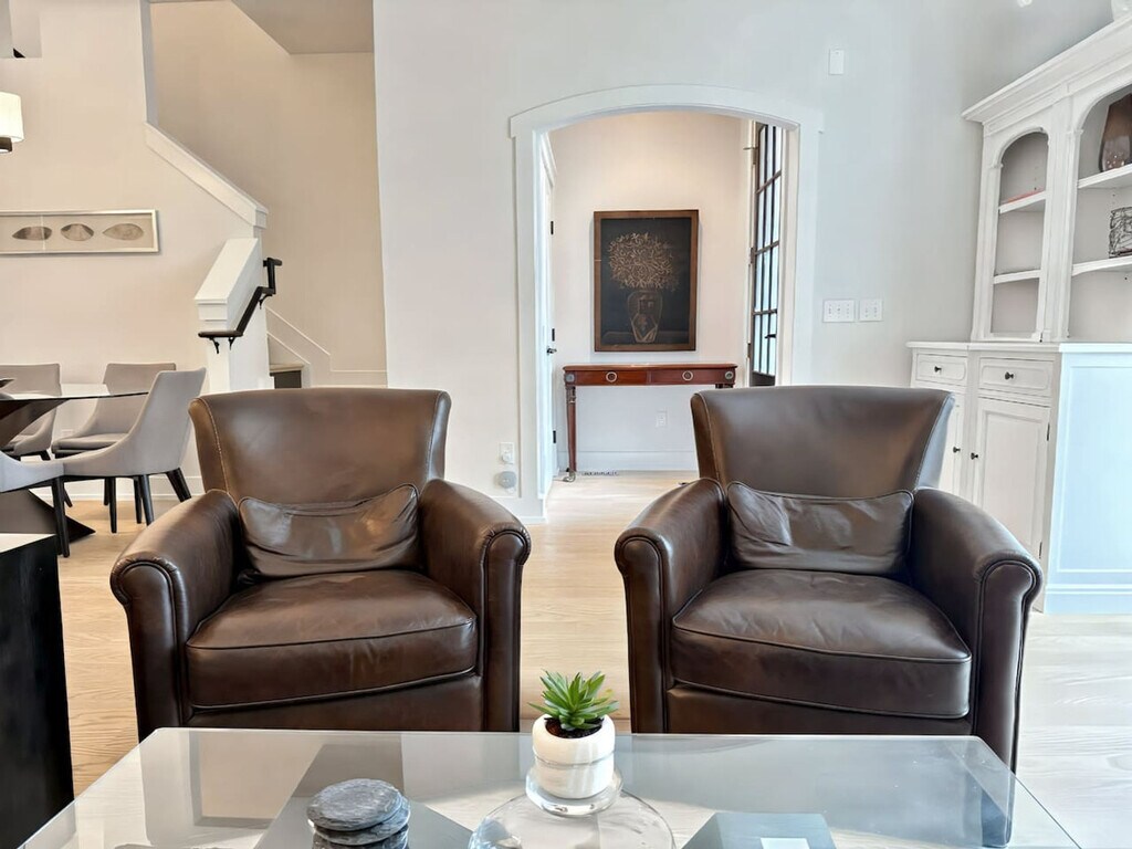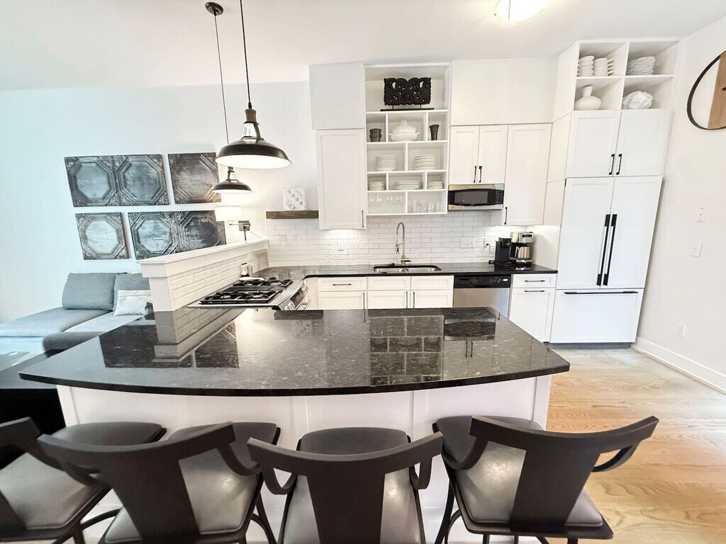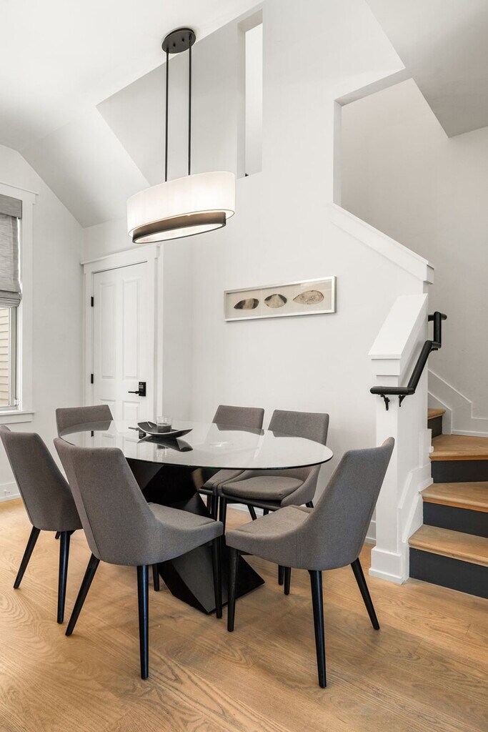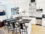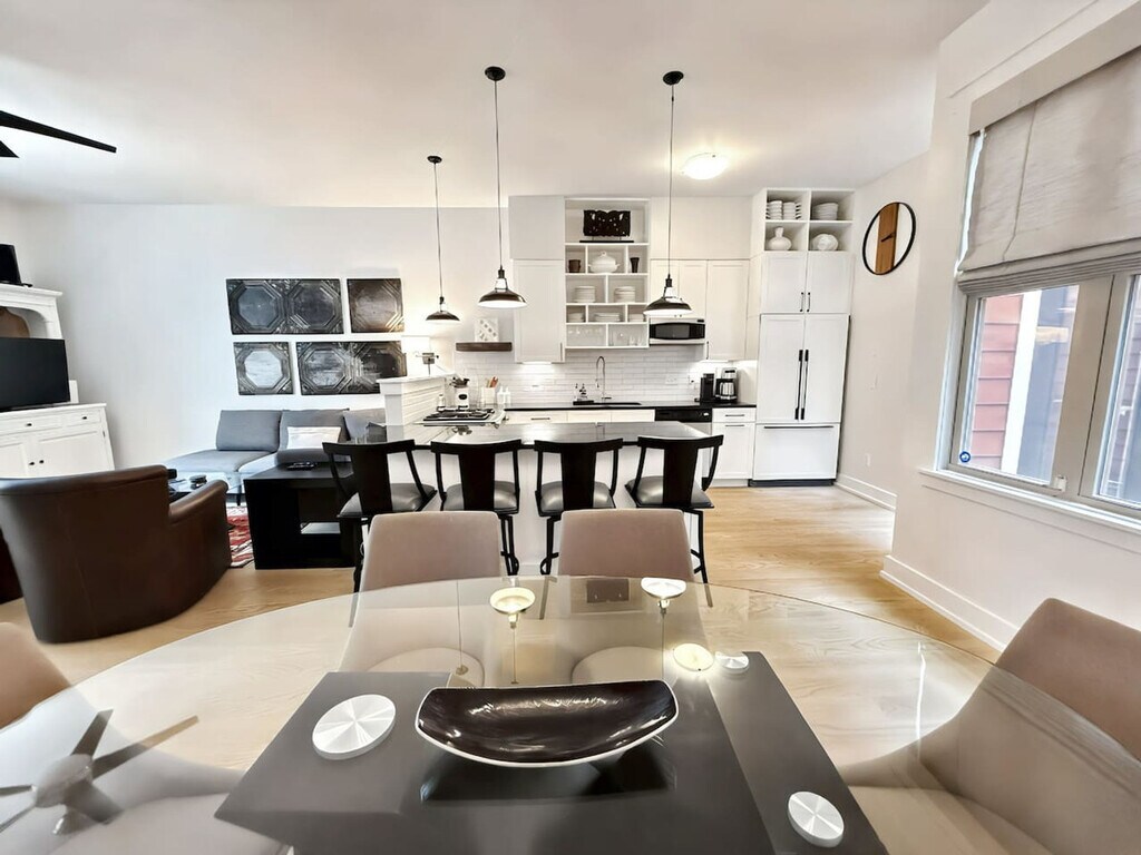 Welcome to your perfect getaway in Cincinnati, where this spacious 3-bedroom, 2.5-bathroom home awaits you near Washington Park. With a private courtyard, driveway, and a large kitchen-living area, this home offers an unbelievable location with bars, restaurants, music, and sports all within walking distance. Feel at home as you wake up and stroll through the park, grab coffee just steps away, and explore the city with ease. The first floor features an open concept kitchen, living room, and dining area, with seating for 10 between the dining table and bar. The fully stocked kitchen includes all cooking essentials, while the living room offers additional seating, a window seat, sofa, chairs, and a TV. Step out onto the patio off the kitchen for outdoor seating and a gas grill. A convenient half bath is also located on this floor. The second floor hosts the master bedroom with a king-size bed, full bathroom with custom marble tile, and a closet, along with two queen bedrooms. A second full bathroom and an office area with a large desk, office chair, and monitors complete this floor. Parking is available on the parking pad at the rear of the property. Situated in Over the Rhine, Cincinnati's food and entertainment district, this home boasts a 97 walk score, making it a walker's paradise. Just one block from Washington Park, you can easily access hundreds of cafes, restaurants, boutiques, and bars. The free streetcar stop is only a short walk away, providing convenient access to downtown and beyond. Nearby attractions include Findlay Market, TQL Stadium, Cincinnati Music Hall, and the Cincinnati Zoo, all within minutes of your doorstep. Quiet hours are observed from 9:30pm to 8am, and any disturbances may result in termination of your reservation without refund. Parties and amplified music are strictly forbidden without advance written consent, and violations may lead to prosecution under Ohio Revised Code. Smoking and open flames are not allowed, with a $300 cleaning fee for violations. Pets are strictly forbidden, with a $300 fee per unauthorized pet per night. Additional fees may apply for unreturned keys, deep cleaning, and security incidents. The home office area includes a large desk, office chair, and monitors, providing a comfortable space for remote work. A laptop computer is not included. [SI]