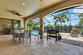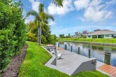 Change is in Order,is perfect when a Change of Scenery is in Order,let this be your go-to vacation location! This 2,004 sq.ft. home has all the space and amenities you need for your family and friends to gather and relax in comfort and style! With 3 bedrooms and a den,it can comfortably sleep up to 11 people. Lounge in the crystal blue pool or sip a drink alongside the fire table. The lanai features a BBQ and a king-sized griddle where you can whip up gastronomic delights ranging from burgers to seafood to flapjacks! View wildlife in the gulf access canal off of the dock or rent a boat to explore the waterways. Cozy up in front of one of the TVs or unwind in the deep soaking tub for some quiet time. Conveniently located near Pine Island Road for an easy hop over to Matlacha and Pine Islands for waterfront dining and adventures! Get ready for a Change and create lasting memories in this well-equipped,luxurious home in SW Cape Coral! Pool heat is available for $25/day or at a reduced rate for stays over 30 days. There is a pack 'n play and a high chair available at this property.