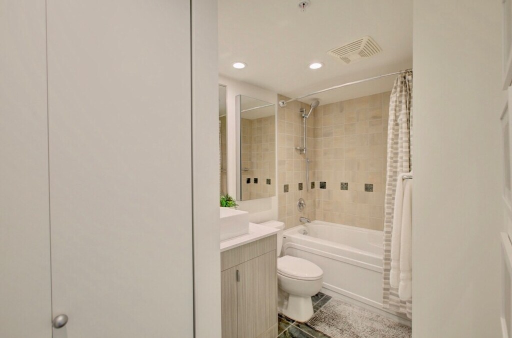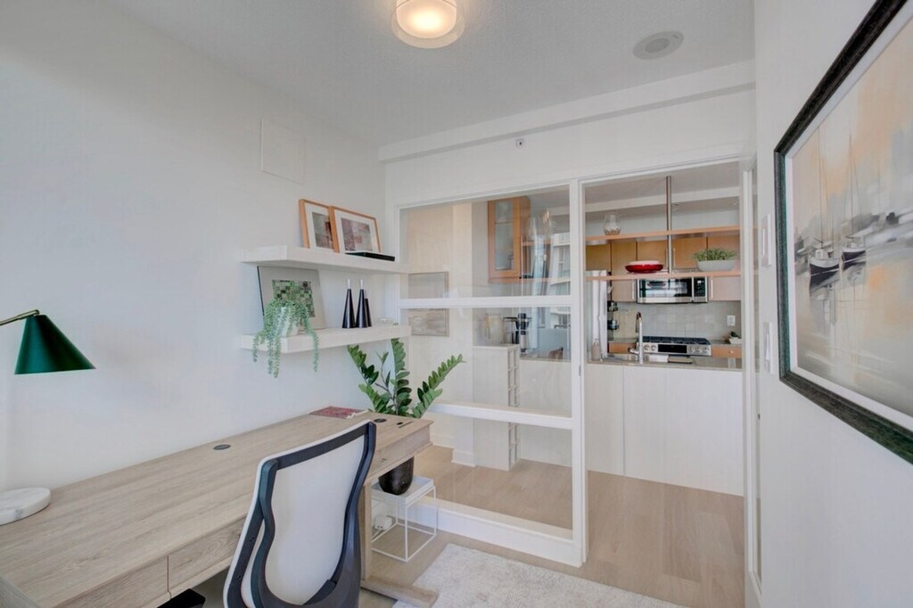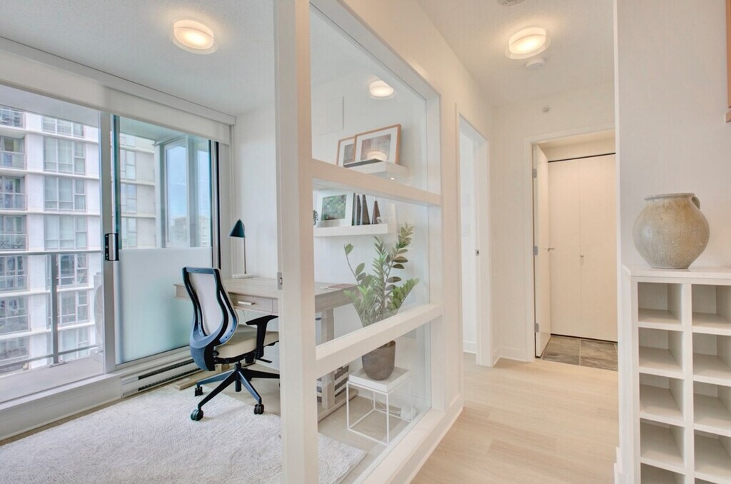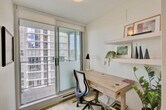 Feel at home in this Vancouver furnished condo for rent in Yaletown. This 1-bedroom, 1-bathroom condo also features a den. The kitchen features stainless steel appliances, oak cabinets, and spacious counters. Enjoy a sunny living room with ample seating and access to the balcony. The bedroom offers a serene place to relax along with ample personal closet space and a comfortable bed. This condo includes in-suite laundry. One underground parking space is included. Pets may be considered, please inquire. Residents of the Azura I can enjoy access to a fitness center, swimming pool, hot tub, sauna, steam room, squash court, massage rooms, and a theatre. A move-out cleaning fee of $185 and a Strata move-in fee of $250 apply. [SI]