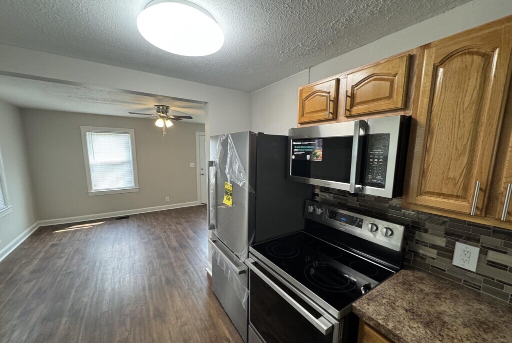 Welcome to this beautifully remodeled open-concept 2-bedroom, 1-bath ranch, offering stylish comfort and modern convenience. Step into a bright, airy living space with a seamless flow to the kitchen, featuring stainless steel appliances, sleek countertops, and a contemporary backsplash. The bathroom has floor to ceiling tiles. The home sits on a well-maintained lot with a newly paved driveway, a partially fenced backyard, This move-in ready home is waiting for you.