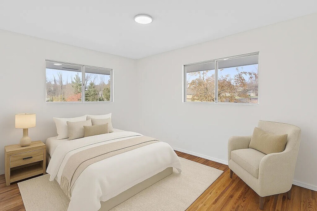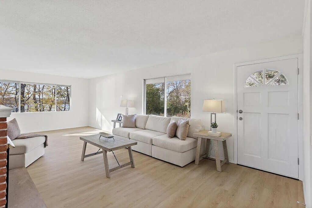 Completely remodeled upper-level unit with stunning Rice Lake frontage in a quiet Maple Grove cul-de-sac. This bright and spacious rental offers lake views, and a large yard (shared) with a scenic paved trail running directly behind the property. The unit includes a brand new kitchen with quartz countertops and all new stainless-steel appliances, 2 brand new bathrooms, new flooring throughout, and brand-new furnace and A/C with updated ductwork. Enjoy outdoor living on the private deck overlooking the lake. 2 car garage parking is included, with ample space for vehicles and storage. New laundry machines (shared). An exceptional opportunity for tenants seeking a modern lakefront home with privacy, natural surroundings, and convenient access to the Twin Cities. Please note: - Includes 2 covered garage spots and use of driveway. - Lease term is 1 year and is non-renewable. - Renter is responsible for all utilities. - Unit is unfurnished. - Pets are welcome! - No smoking.