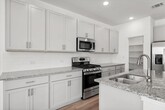 Brand new The single-story at Lisso welcomes you with a gallery entry leading to two front bedrooms and a full bath, perfect for guests or family. The heart of the home features an open kitchen, dining area, and Great Room, ideal for entertaining and everyday living. A central island with a stainless steel single-basin sink, dishwasher, and seating offers a convenient spot for quick meals, while the walk-in pantry provides ample storage. Tucked away at the back, the owner’s suite offers a relaxing retreat with a walk-in shower, double vanity, linen storage, enclosed water closet, and a spacious walk-in closet. With a laundry room and coat closet near the garage entry, this home is as functional as it is inviting. Structural options include: 5' garage storage extension, pre plumb for water softener, and whole house blinds.
