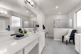 This newly built Trophy Signature Homes 5 bedroom, 4 bath home is light and bright. It features an open floor plan with high ceilinged family room and gourmet kitchen, large center island breakfast bar, sleek white cabinetry, gas range cooktop and neutral wood look luxury vinyl plank flooring, with a mud room off the Utility Garage area. The gracious primary suite has master bath with separate vanities, shower, and walk-in closet. The covered patio and plenty of storage space add to the appeal. Landscaped and ready for Move in!