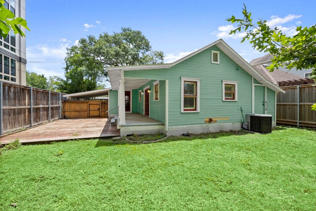 Cute and comfy home in the heart of the Houston Heights. This classic bungalow is large for a one bedroom and has the added plus of a master bath and guest bath. House features one bedroom,two baths one with clawfoot tub; separate living and dining areas,large kitchen with granite countertops; hardwood floors,central air and heat,garage,fenced backyard,large deck,immediate availability,$1,000 deposit,same day approval and lease signing available,thank you! This unique footprint is perfect! MLS# 92178181