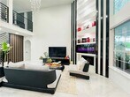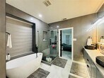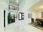 A spacious home over 4,000SF with fully renovated throughout. Painted interior and exterior, replaced luxury plank vinyl and tile flooring throughout the house. custom Formica kitchen cabinets with lighting on top and bottom for elegant, upgraded high level quartz countertop and backsplash. The unique custom built display boxes above the electric fireplace addition to the gas fireplace. All bathrooms replaced the custom Formica vanities with lighting on the bottom, beautiful designed standing shower and light fixtures. Master bathroom has double sinks and walls have been tiled up to the ceiling. Custom black iron stair rails and stairways with lighting motion sensor. All windows have custom interior covers rolling. Backyard has large epoxy concrete flooring with cover patio and a clean looks of the epoxy garage flooring. The elegant chandeliers and new light fixtures bright up each area of the house. MUST SEE!